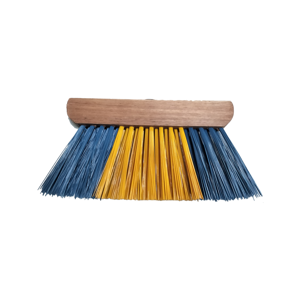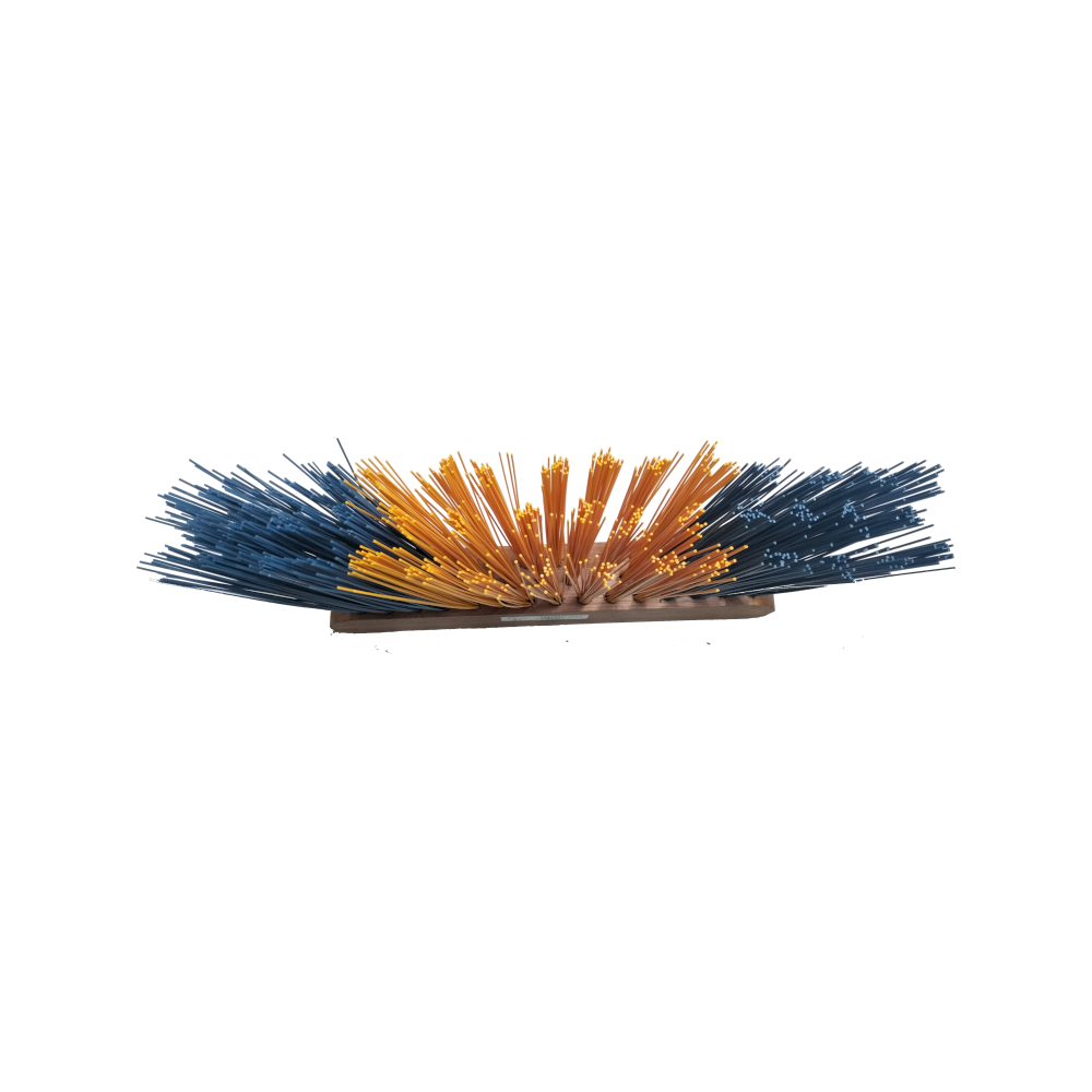 Stiff PVC Bristles (PVC 粗毛): The coarse blue and orange bristles are engineered to move heavy dirt, sand, and large particles that soft brooms might miss.