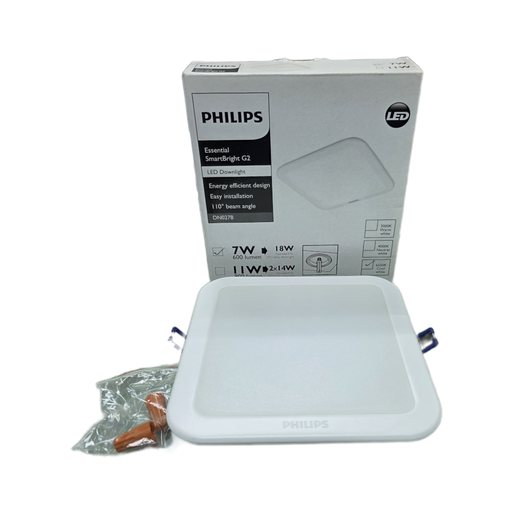 The Philips Essential SmartBright G2 is a high-quality, square recessed LED downlight designed for reliable performance and easy installation in various indoor environments. Part of the trusted Philips LED range, this fixture provides an energy-efficient alternative to traditional CFLi lamp downlights, offering significant energy savings without compromising on light quality.