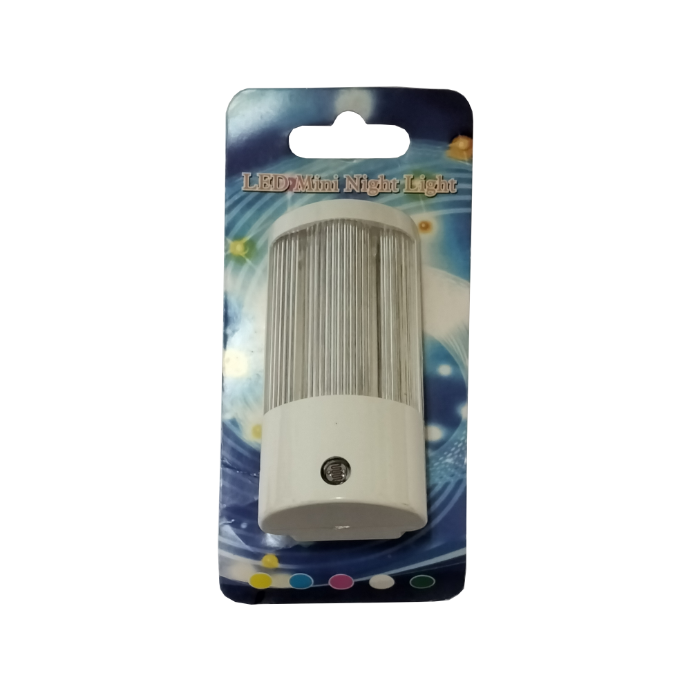 The E060-21893 is an energy-efficient LED night light designed for automatic indoor illumination. Featuring a sleek, cylindrical ribbed cover, this model provides a soft, diffused light that is perfect for hallways, bedrooms, and other dark areas of the home. With its integrated light-sensitive sensor, the device operates autonomously to ensure visibility only when the surrounding environment is dark.
