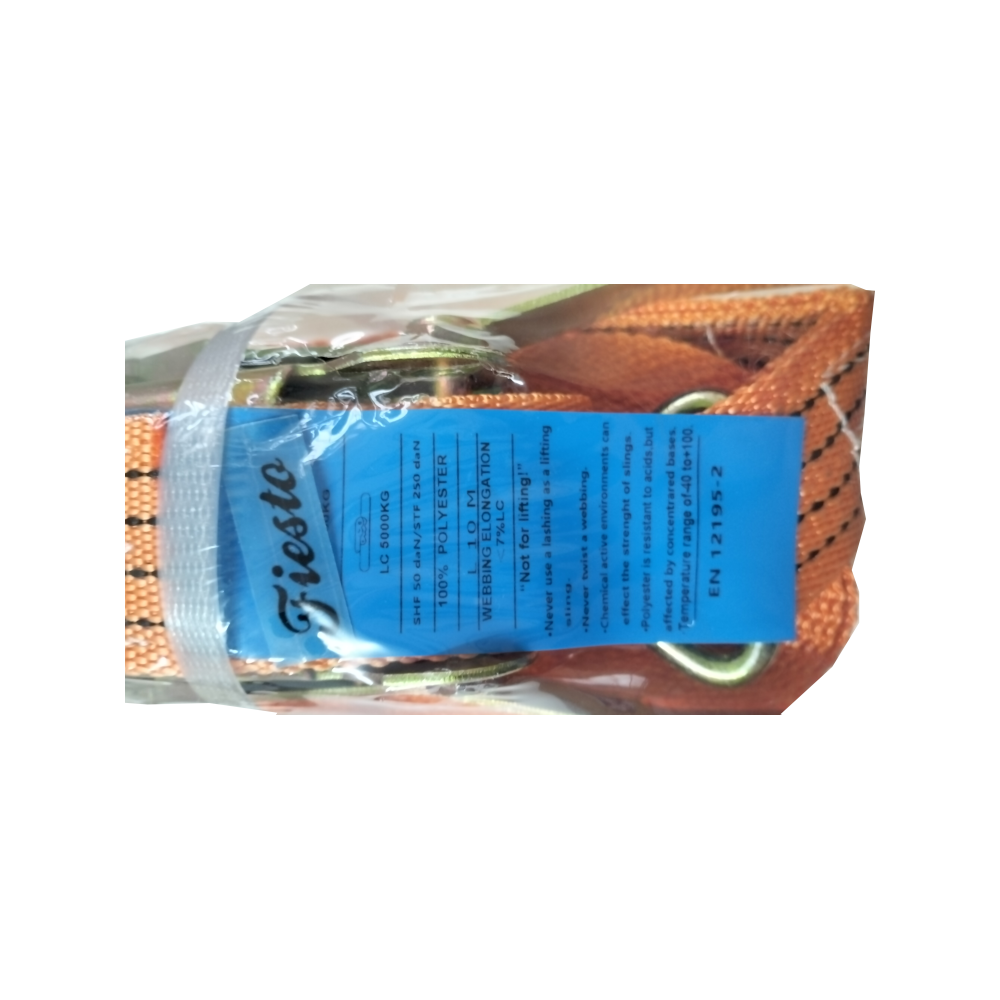 This tie-down is specifically designed for lorry (truck) use, which means it is suitable for securing large and heavy items such as machinery, building materials, and pallets on the flatbed of a truck. The 5-ton capacity ensures it can handle substantial weight, and the 10-meter length provides the necessary reach for various load sizes and configurations.