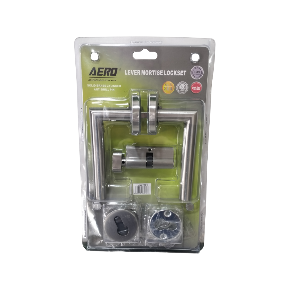 This AERO A2200-SS Lever Handle Mortise Lock Set is a complete and robust locking solution designed for durability, security, and a modern aesthetic. Ideal for residential and commercial interior or exterior doors requiring a high level of security and reliable operation.