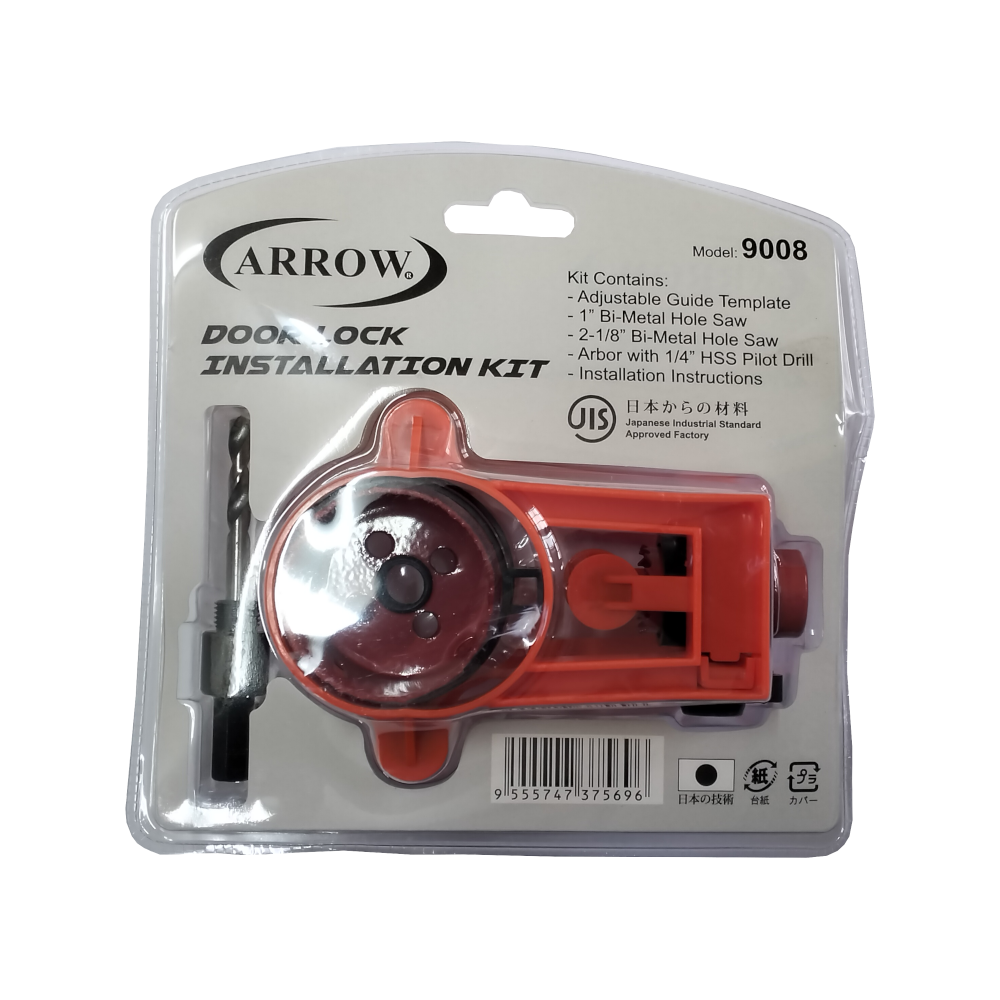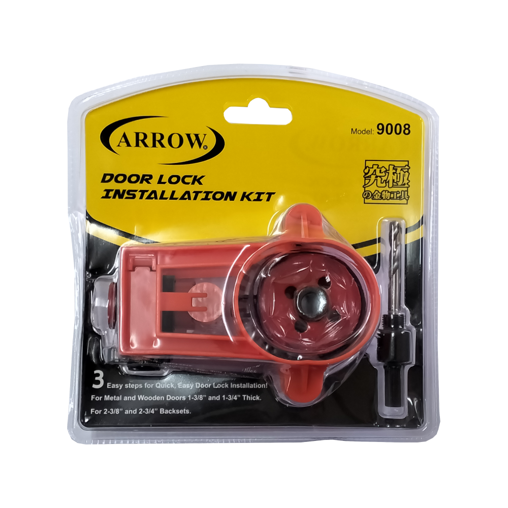 The ARROW 9008 is a comprehensive installation solution designed for both professional tradespeople and DIY enthusiasts. This kit provides the necessary tools to drill precise holes for new door locks and deadbolts on both metal and wooden doors.