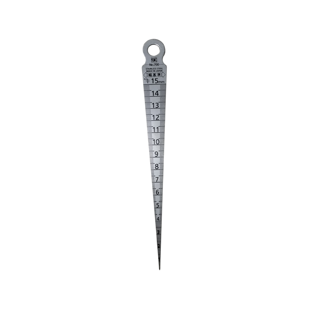| Usage Method | The tapered blade is inserted into the bore, slot, or gap until it fits snugly. The measurement is read directly off the scale at the point where the blade meets the opening's edge. |