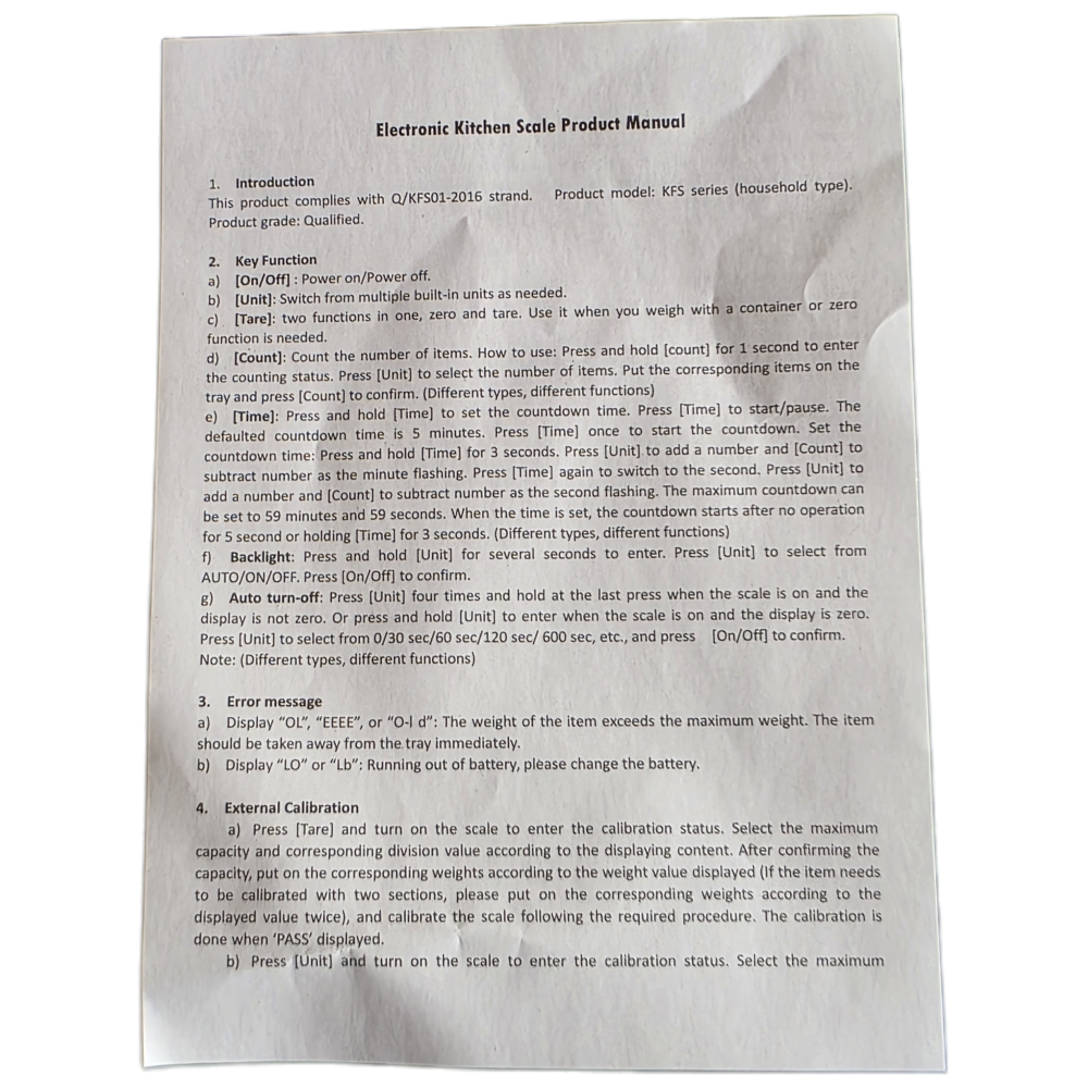 W200-1241 (7KG X 1G) 21-124-1 HF1976 DIGITAL SCALE Model: HF-1976 High precision with capacity 7kg / 1gm *Always use the scale on a solid and flat surface *Accurate and easy use digital scale *Avoid contoct with acid citrus juices *Clean the scale with a slightly damp cloth