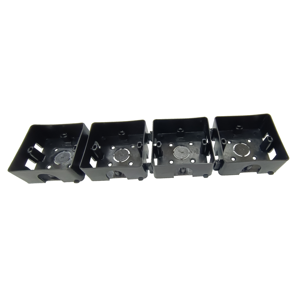 The TC/TP E006-030 is a high-quality electrical conceal box designed for recessed wall installations during construction. Made from durable black PVC, this box serves as a protective base for standard single switches and socket outlets from major brands like Schneider, MK, and UMS. Its unique "joint" design features interlocking teeth that allow multiple boxes to be connected seamlessly for multi-gang configurations.