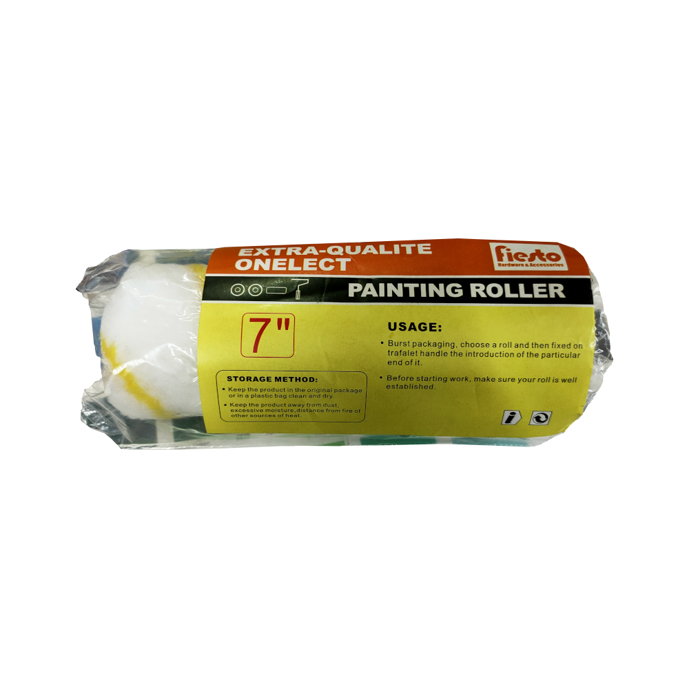 The Fiesto Paint Roller Refill (PR-2001) is a standard 7-inch heavy-duty refill, easily recognized by its Yellow & White (Y&W) striped pattern.