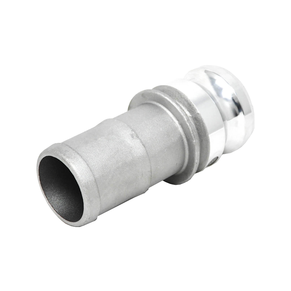 The Type E Camlock Coupler is a male adapter specifically designed for hose connectivity. It features a male grooved end that fits into any female camlock coupler (Type B, C, D, or DC) and a hose shank (hose tail) on the opposite end. This shank is inserted into the bore of a hose and secured using external clamps. It is a staple in construction, agriculture, and industrial liquid handling.