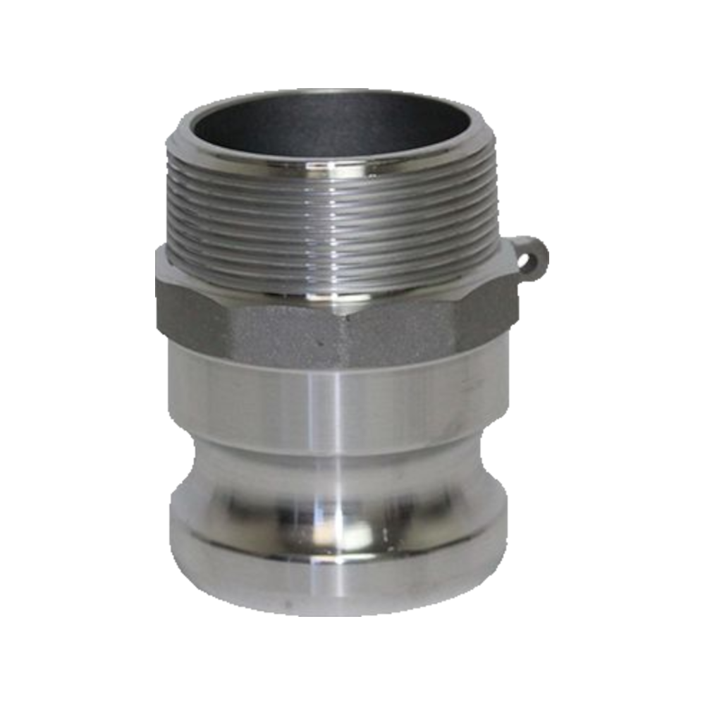 The Type F Camlock Coupler is a male adapter designed for connecting to female pipe threads. It features a male grooved adapter on one side and a male BSP/NPT thread on the other. This allows it to be threaded directly into a female-threaded valve, pump, or tank outlet, creating a male quick-connect point for female couplers (Type B, C, D, or DC).