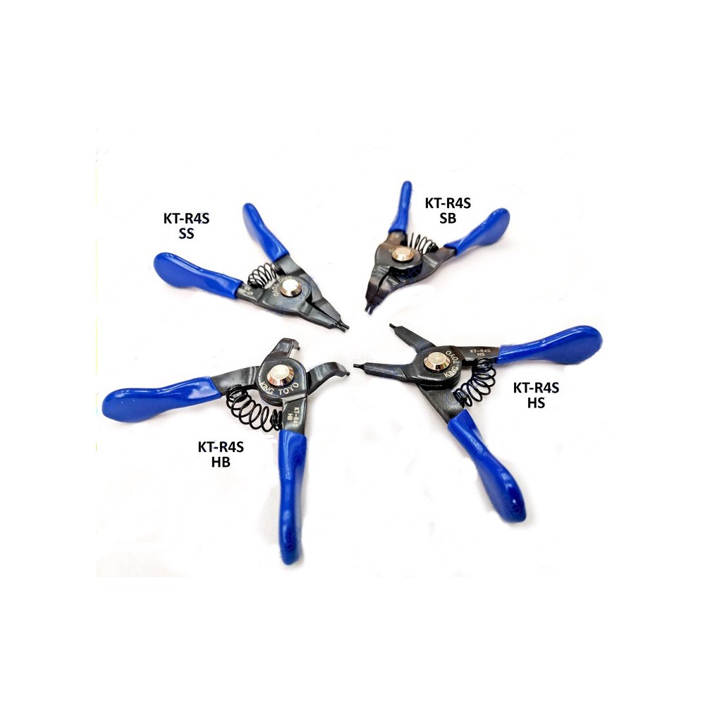 This is the KINGTOYO KT-R4S 4-piece Mini Snap Plier Set, designed for precision work with small retaining (snap) rings. It is an essential set for mechanics, technicians, and hobbyists who frequently work with small assemblies.