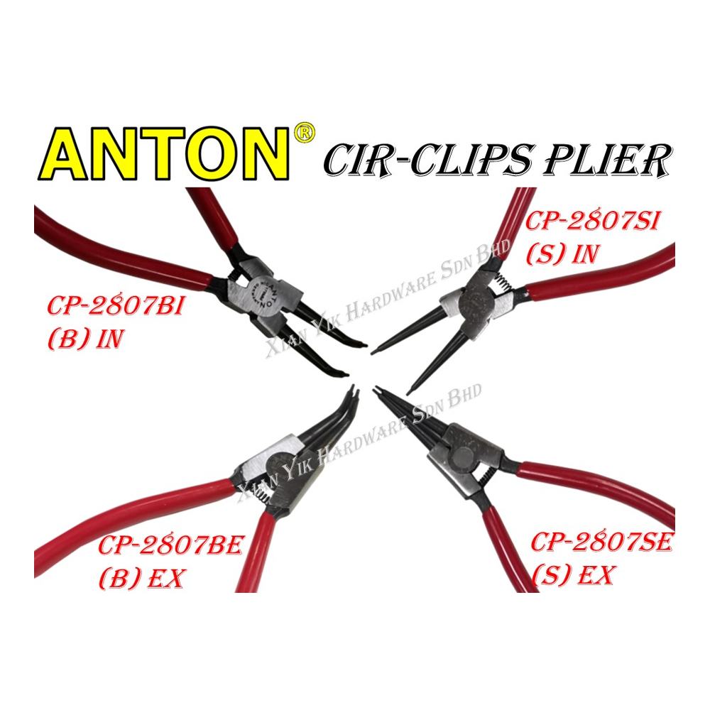 This is a set of four distinct ANTON Fiesto brand Cir-Clips Pliers, each with a 7-inch (175mm) length, designed for professional use in installing and removing both internal and external retaining rings.