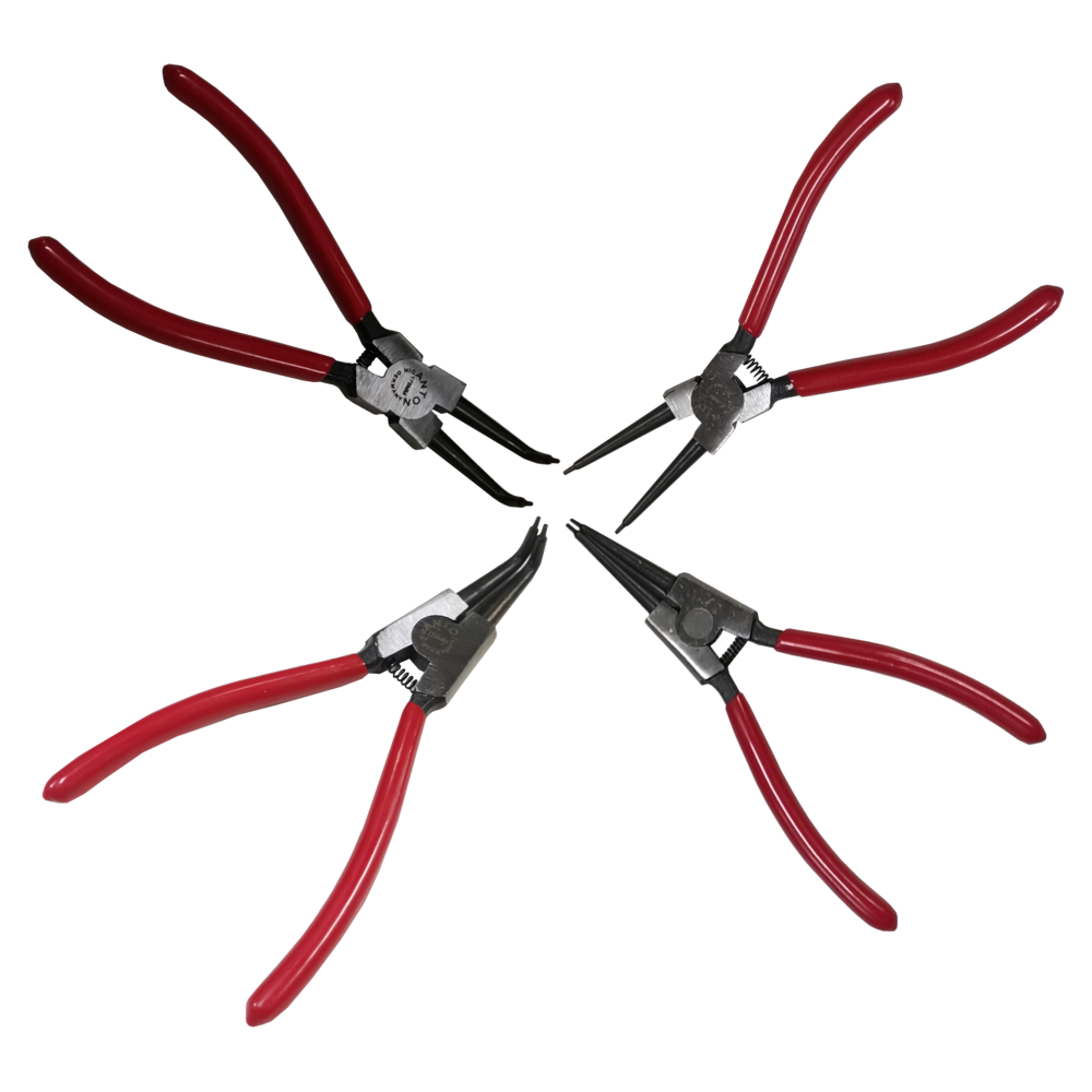 The set is defined by the four specific tip configurations needed to handle all common types of circlips:
