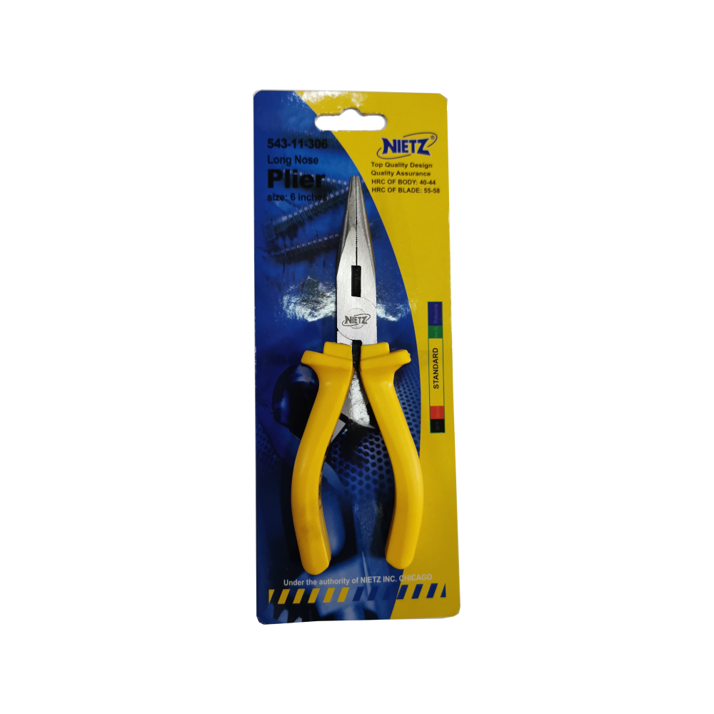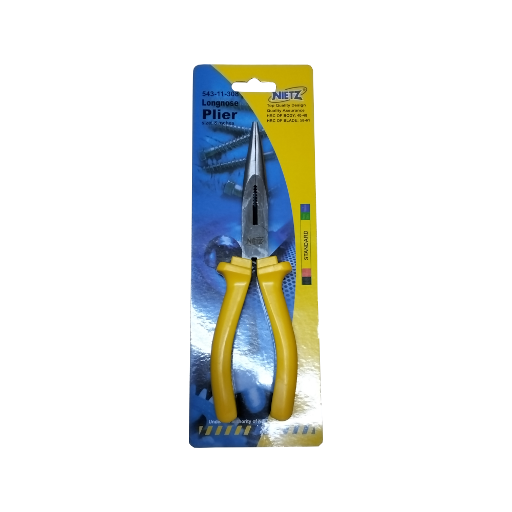 The NIETZ Professional Long Nozzle Pliers (also known as Long Nose or Needle Nose pliers) are precision-engineered for industrial quality assurance. These pliers are designed for specialized tasks such as reaching into confined spaces, bending wire, and precision gripping.