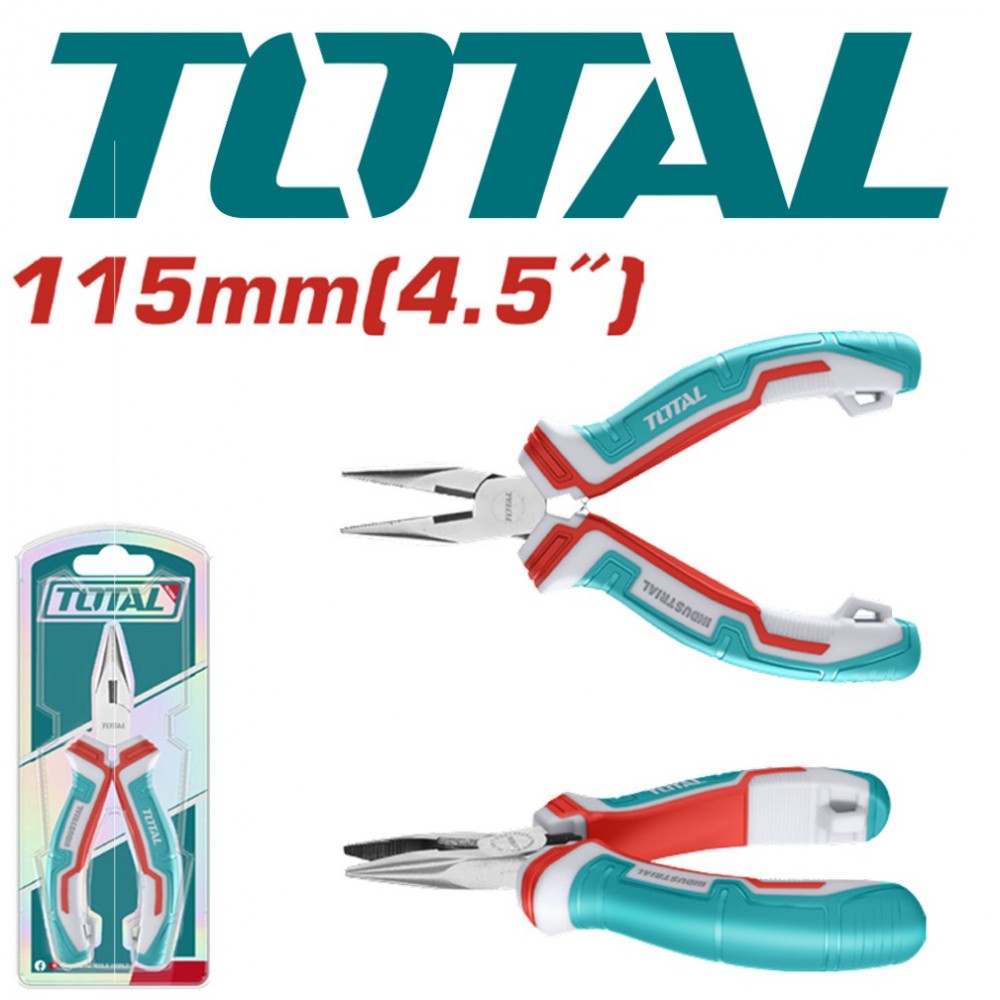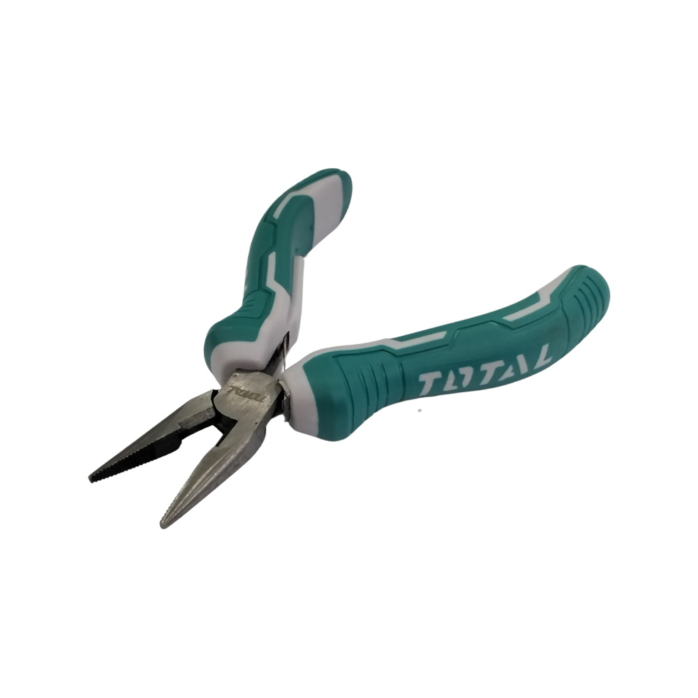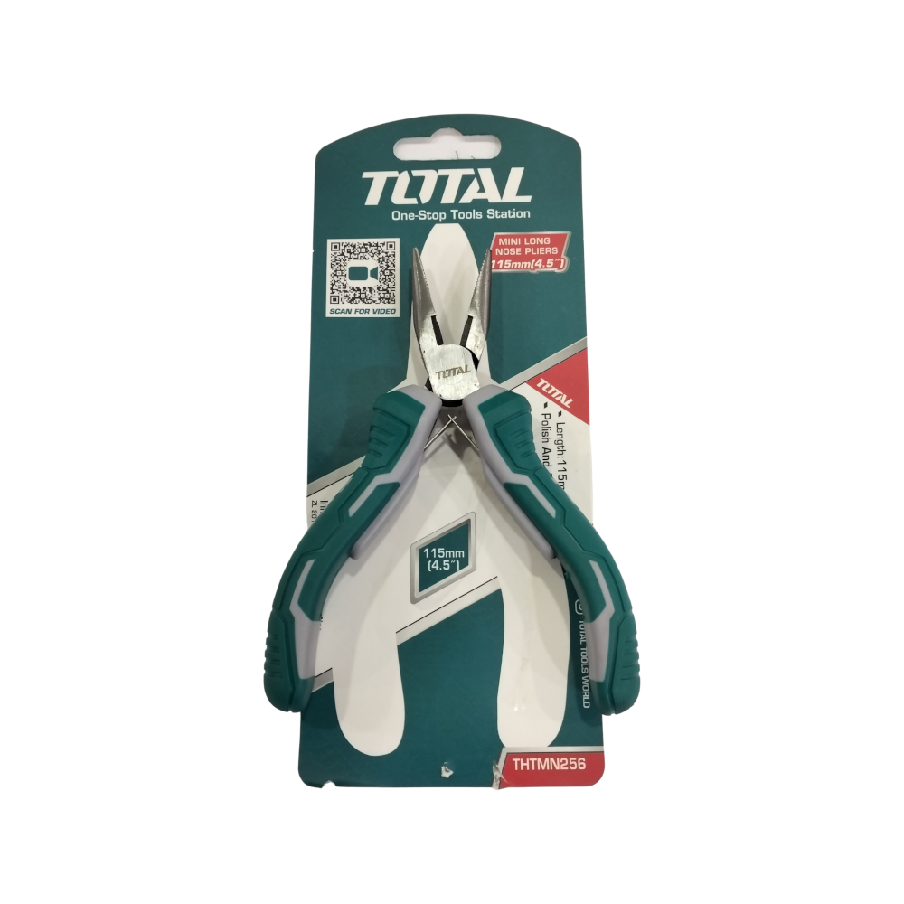 The TOTAL THTMN256 is a 115mm (4.5") mini long nose plier designed for precision work in tight and confined spaces. Constructed from high-quality chrome vanadium (CrV) steel, these pliers feature a slim long-nose design and fine serrated jaws for a secure, non-slip grip on small components and wires. The tool is finished with polish and anti-rust oil to ensure long-term durability and resistance to corrosion.