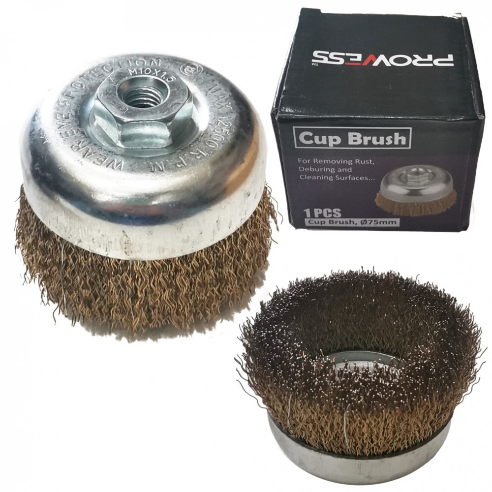 Wire cup brushes are cup-shaped brushing tools with steel filaments. Used for surface preparation, deburring, and surface finishing.