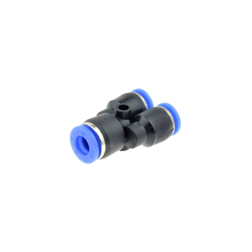 Split Air Distribution: Converts one threaded port into a Y-shaped junction, providing two quick-connect outputs for air tubing of the same size.