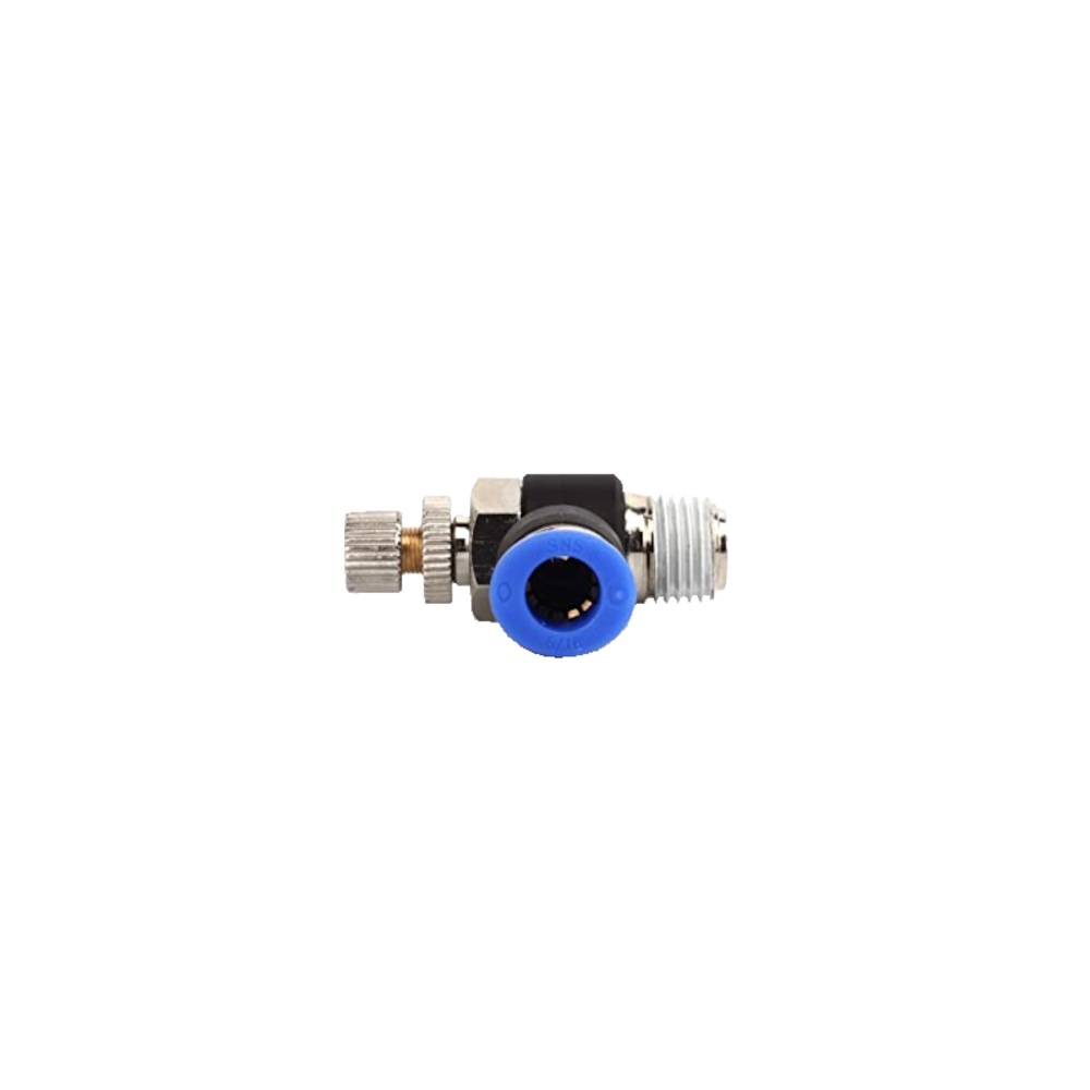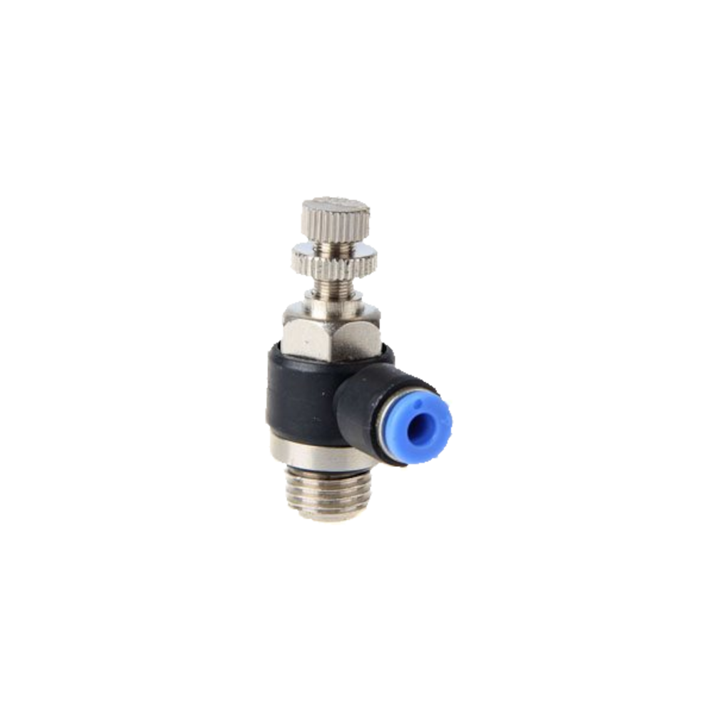 Primary Function: Speed Control (Metering). By adjusting the flow of compressed air, this fitting controls the actuation speed (extension or retraction) of a pneumatic cylinder.