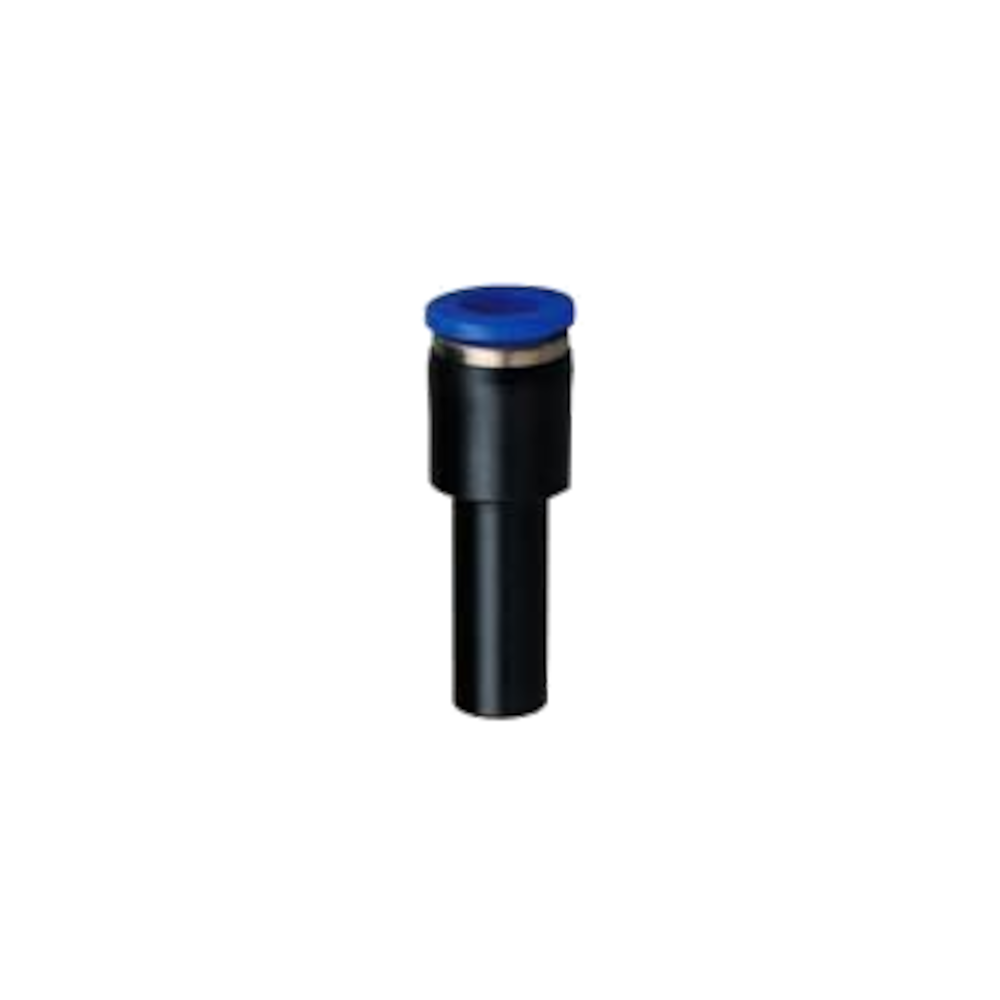 Function: Reducing Plug/Stem. It inserts into an existing female push-to-connect fitting to reduce the size of the tube that can be connected or to cap off a line using a smaller tube/stem diameter.