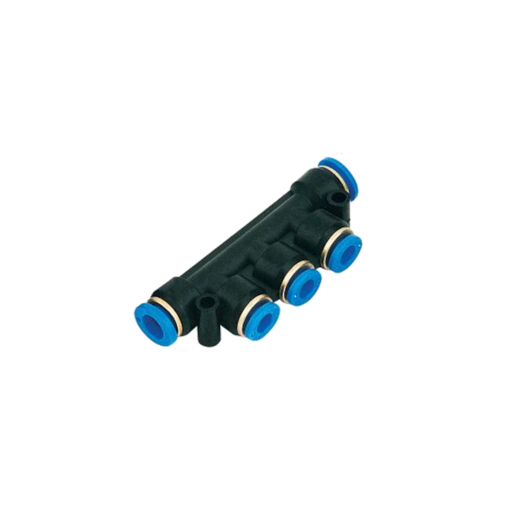 Function: Used for distribution or consolidation of multiple air lines, often reducing the tube size from the main line to the smaller branch lines. The "Multiple Tee" design indicates a manifold-like function for compact air distribution.