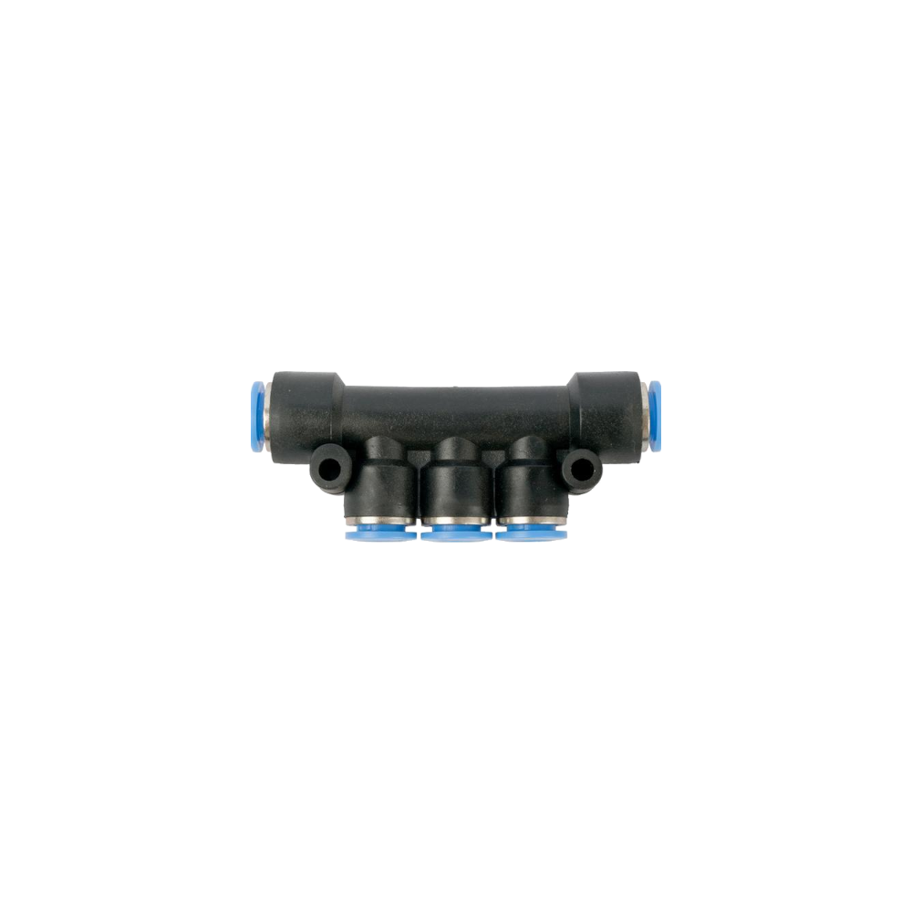 This component is a type of pneumatic push-in fitting used to distribute compressed air in a pneumatic system.