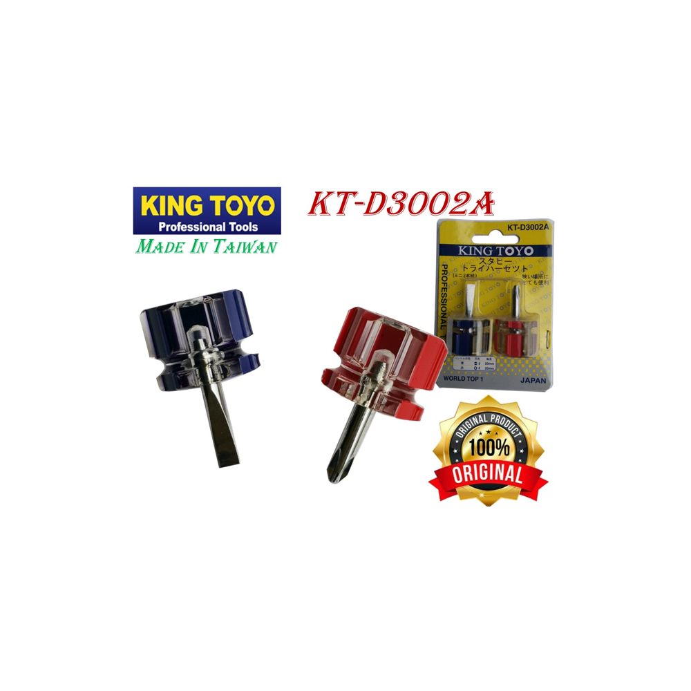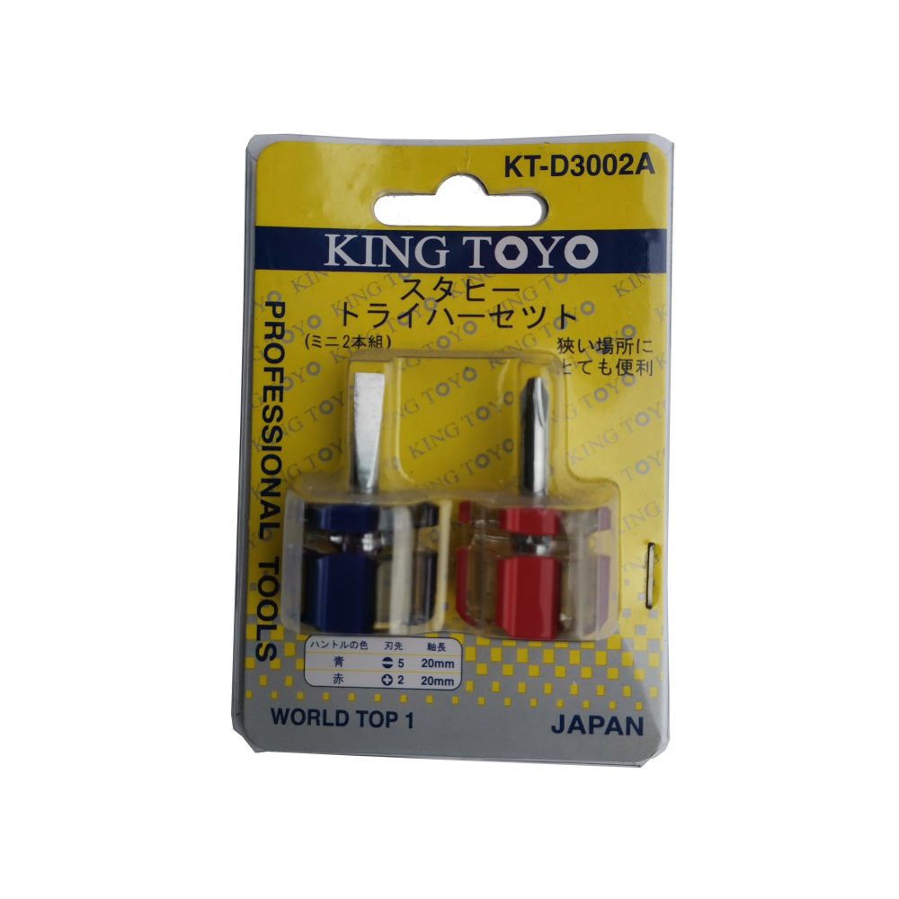 This is a professional-grade, compact two-piece mini screwdriver set from KING TOYO Professional Tools. The set includes one Phillips-head and one Flat-head screwdriver, designed for precision work and accessing fasteners in tight or confined spaces where standard screwdrivers cannot reach.