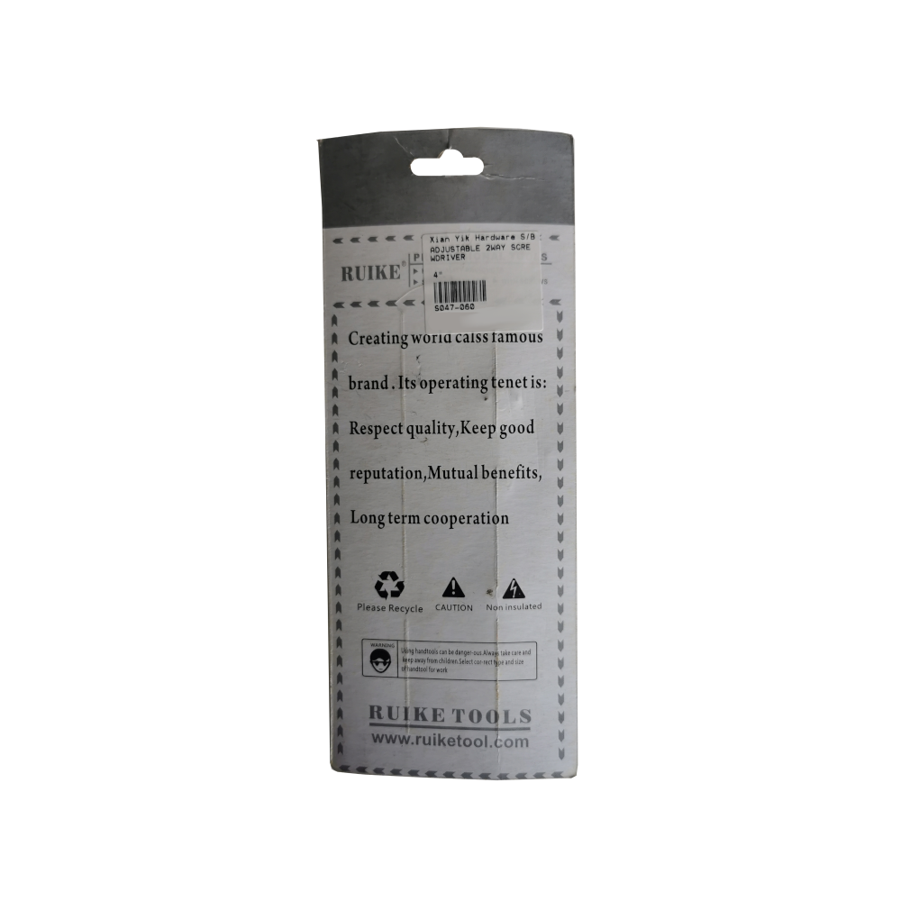 The Ruike Adjustable 2-Way Screwdriver is a versatile and compact manual fastening tool designed for precision work in various mechanical and household applications. This 4-inch tool features a double-ended blade that combines two essential drive types in a single, space-saving design.