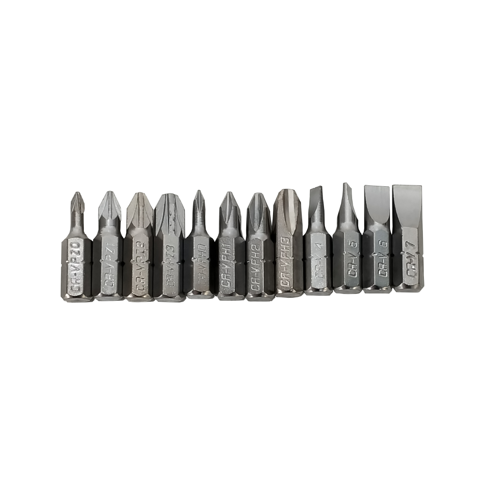 12 pcs 6.35mm x 25mm Cr-V Bits: