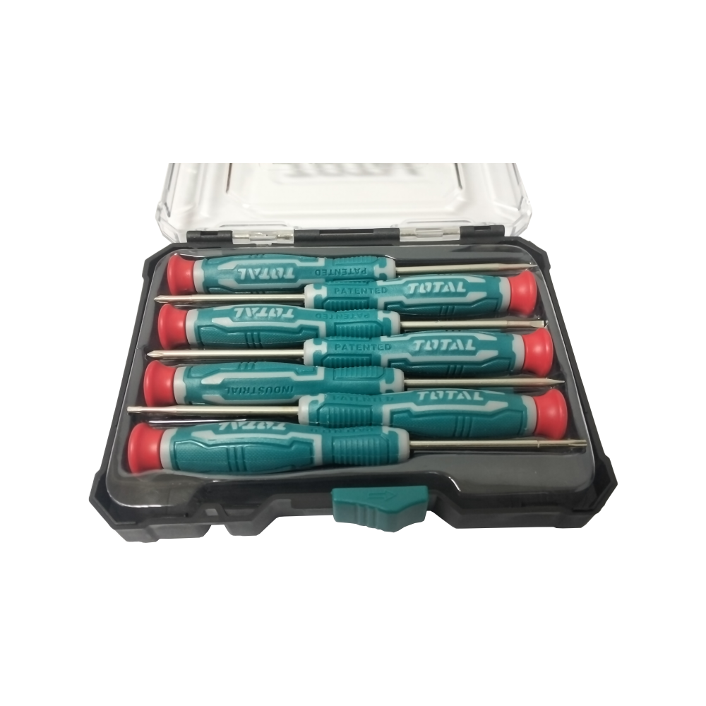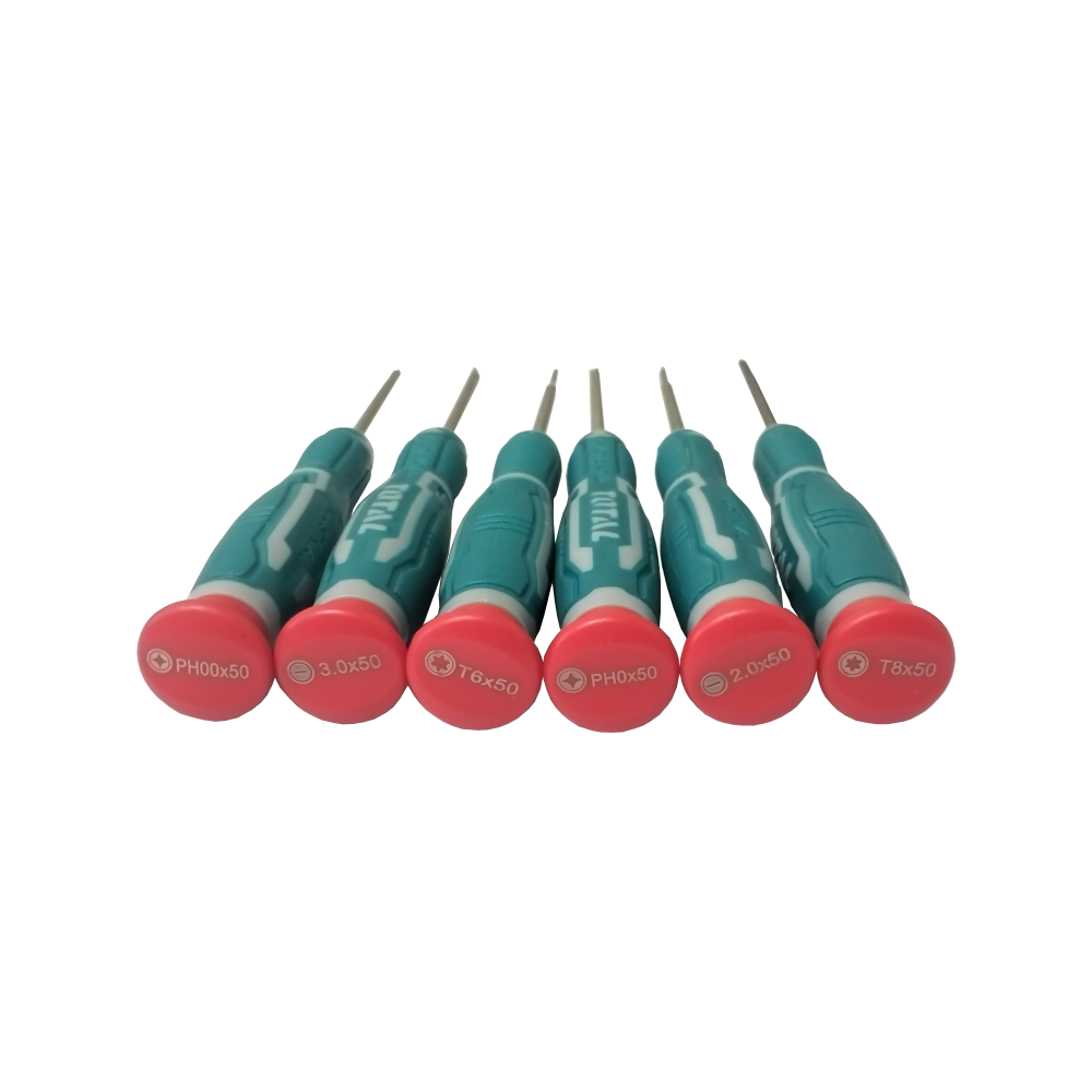 The set includes 7 precision screwdrivers with a 50mm blade length: