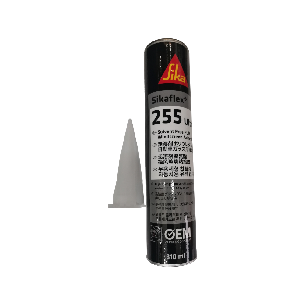 Sikaflex-255 Ultra is a high-performance, solvent-free PUR (polyurethane) adhesive designed specifically for automotive windscreen replacement. It is engineered for manual application, providing a long open time that ensures safe installation even under warm weather conditions.
