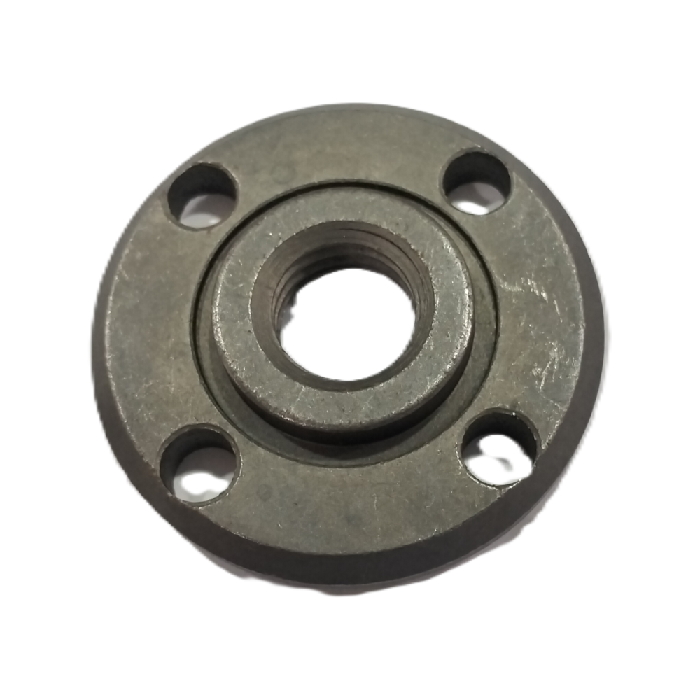Function: This nut is the FINAL SECURING DEVICE in the grinder assembly, clamping the cutting/grinding disc firmly against the inner flange (not pictured) and onto the spindle shaft, which is CRITICAL FOR SAFE OPERATION.
