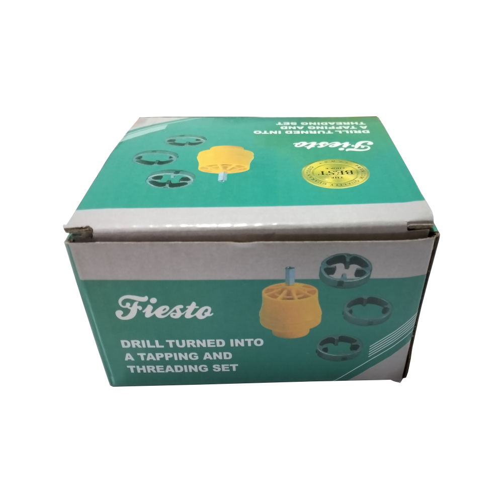 This item is a FIESTO Drill Turned Into a Tapping and Threading Set, designed specifically for creating threads on PVC pipes.