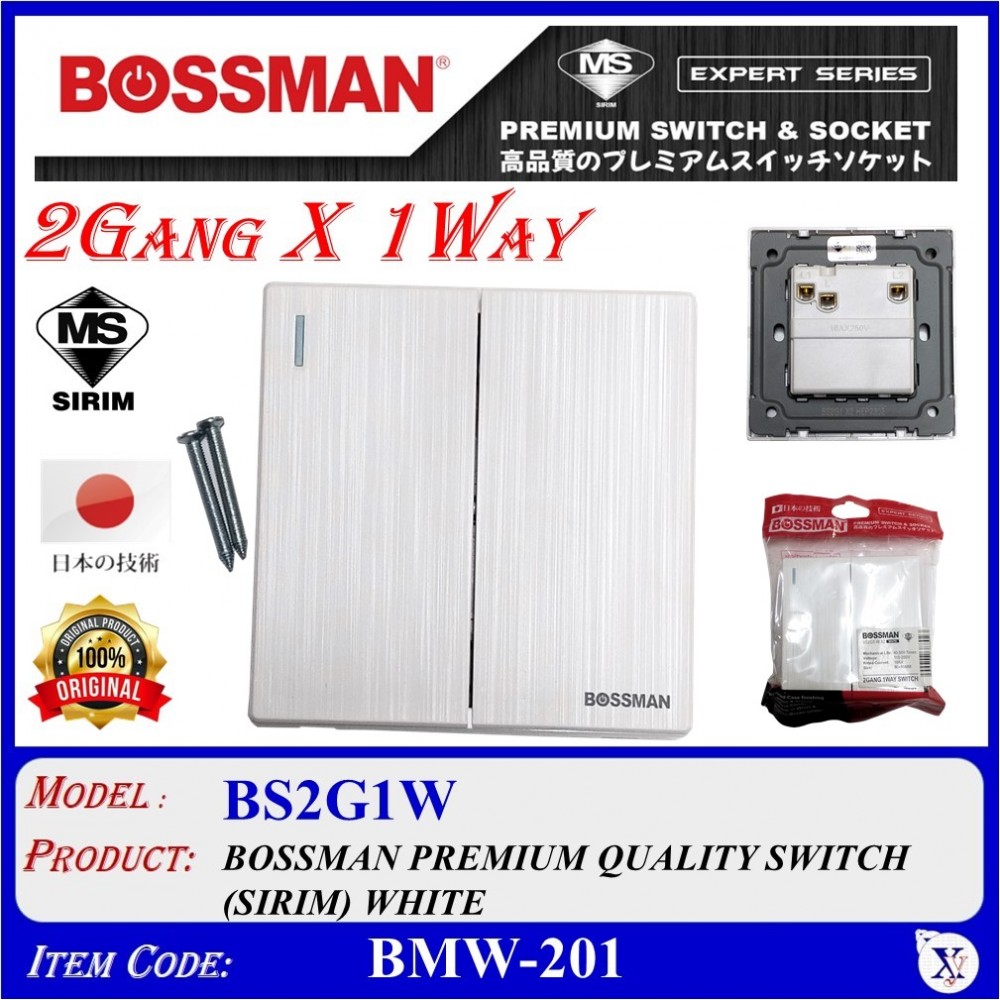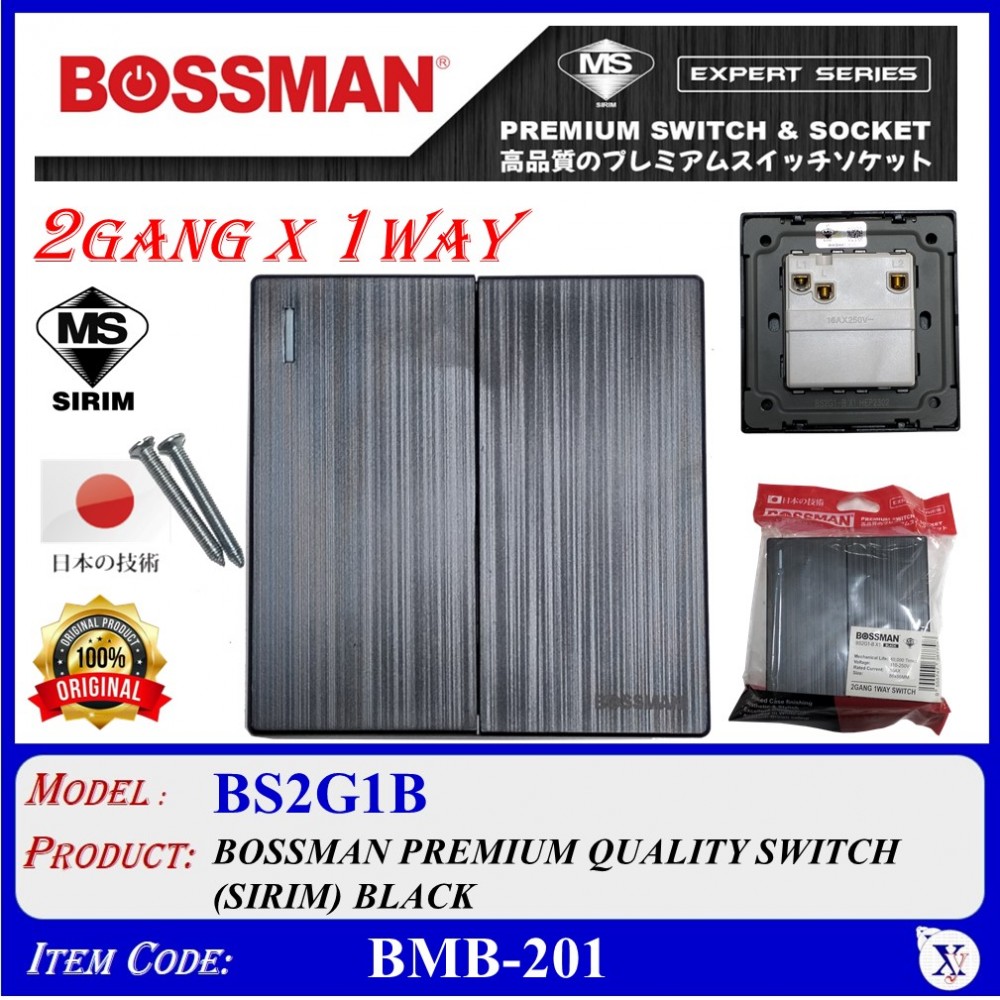 BOSSMAN PREMIUM QUALITY SWITCH (SIRIM) 2Gang X 1Way (BLACK / WHITE)