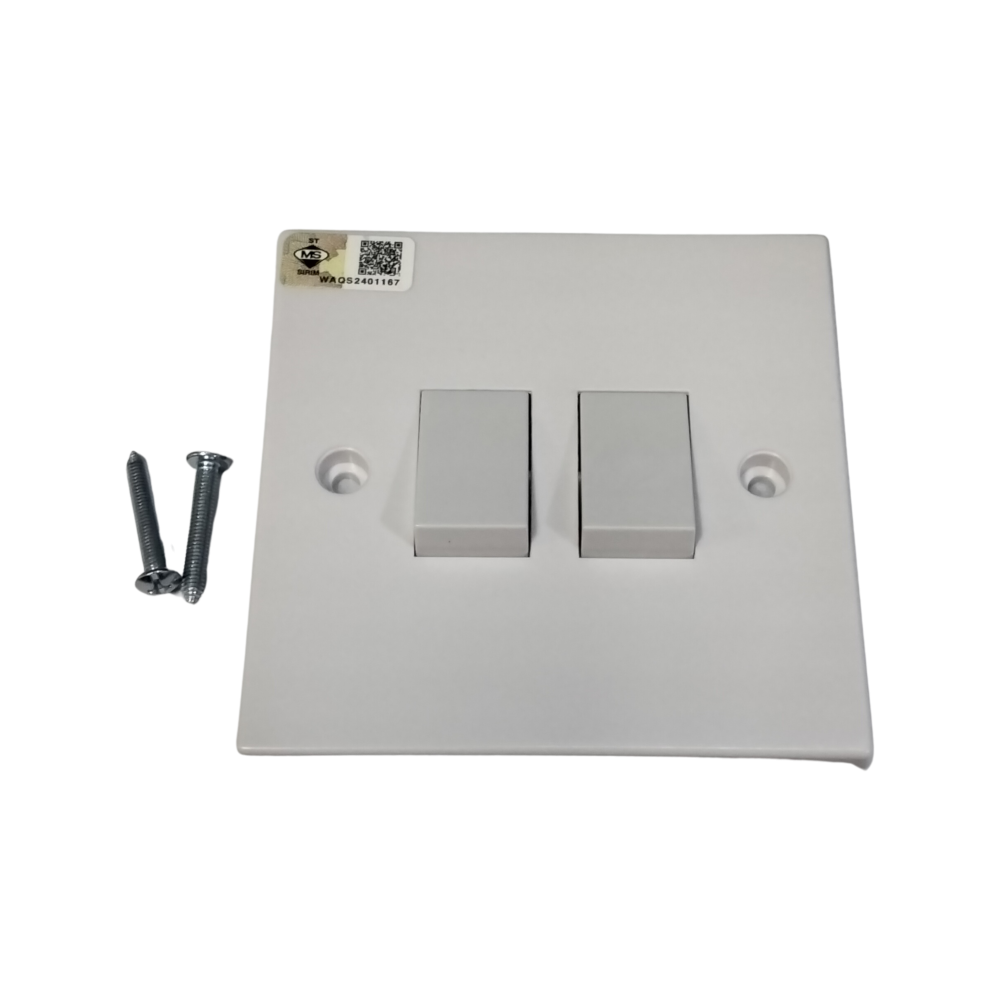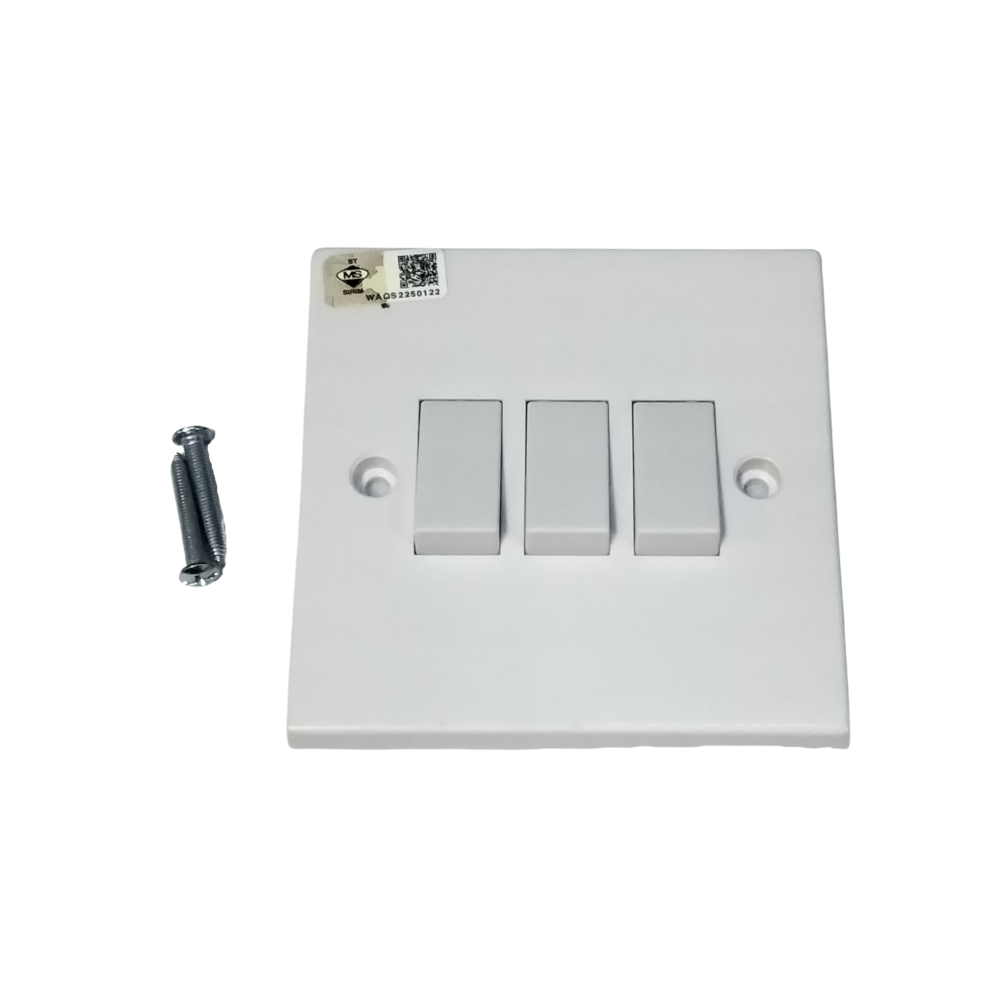 The UMS PVC Lamp Flush Switch series is a standard, cost-effective wiring solution commonly used for residential and indoor commercial lighting. Unlike the heavy-duty Metal Clad series, these are designed to be mounted "flush" against the wall (recessed into a backbox) for a cleaner, modern look.