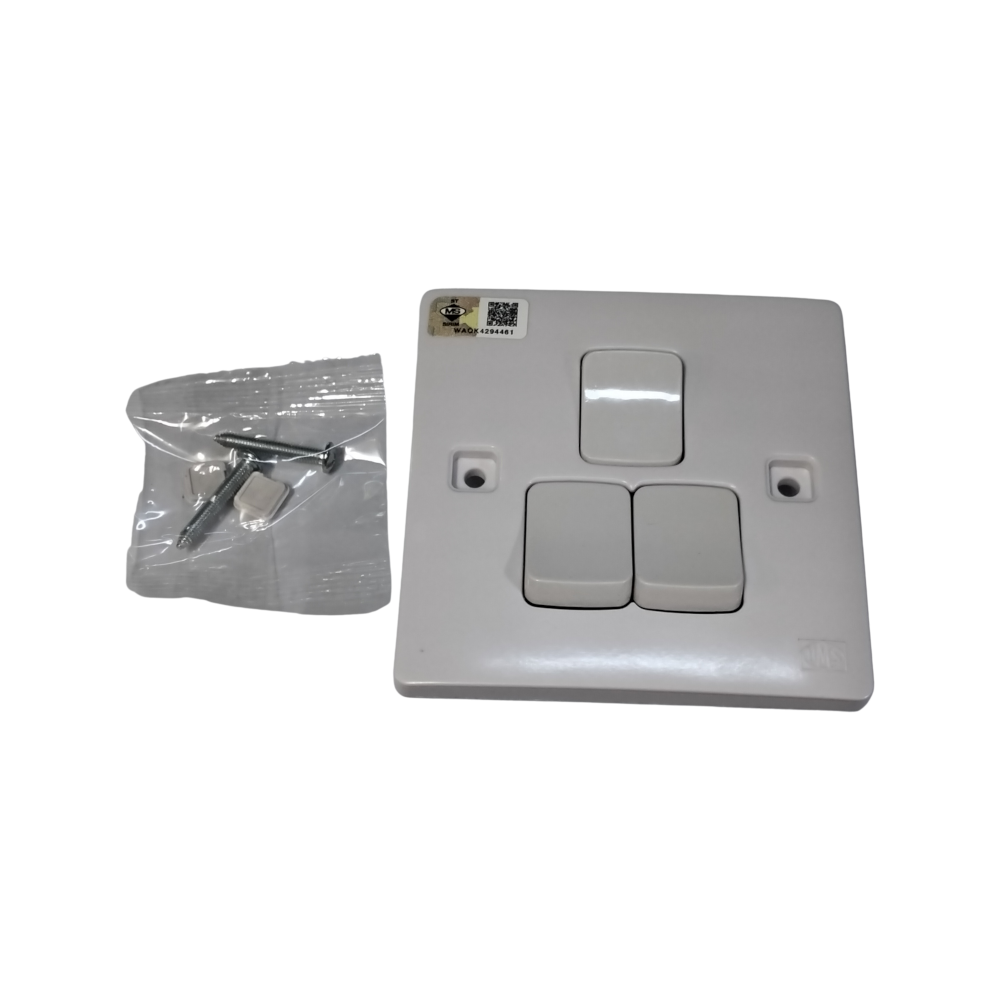 The UMS 6 Series (6011-1W to 6041-1W) is a popular line of slim-profile PVC flush switches. They are widely recognized for their clean, minimalist design and are a standard choice for modern Malaysian homes and offices.