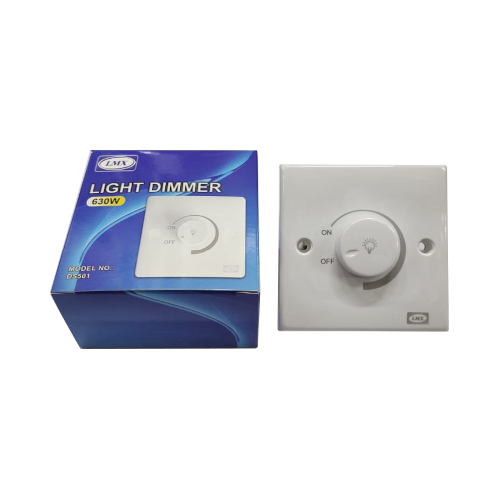The LMX DS501 Light Dimmer is a practical and efficient solution for controlling the brightness of your indoor lighting. Designed for standard wall-mount installation, it features a smooth rotary dial that allows you to adjust light intensity to suit different moods or tasks.