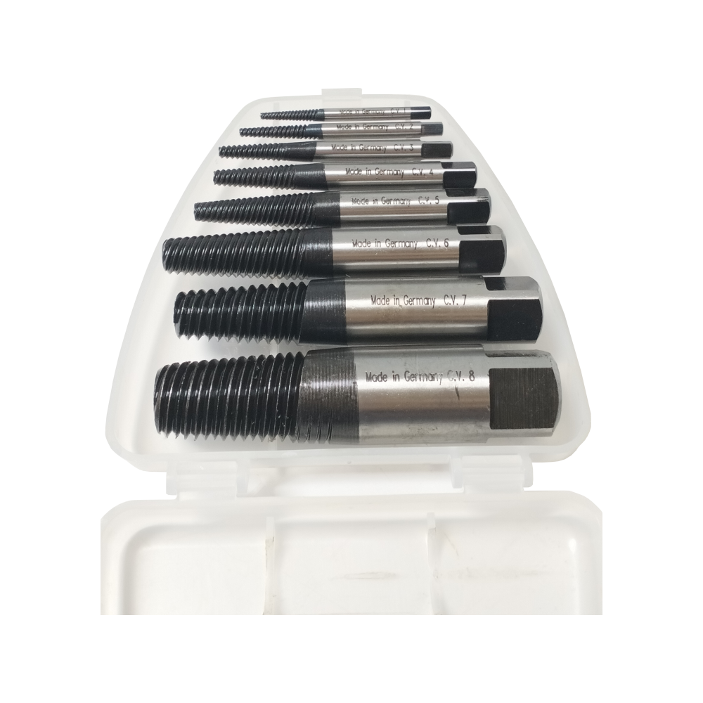 When using the larger extractors (No. 6, 7, or 8) for pipes, ensure you have a heavy-duty adjustable tap wrench or a large crescent wrench. The torque required to move a rusted 2" pipe is immense, and using a small wrench can cause the extractor to tilt and slip.