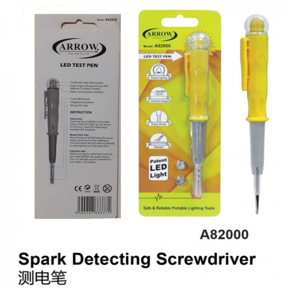 The ARROW A82000 LED Test Pen is a multi-functional spark detecting screwdriver designed for safe and reliable electrical diagnostics. This versatile tool combines high-sensitivity induction testing with a durable physical design, making it an essential instrument for identifying live wires and circuit breaks.