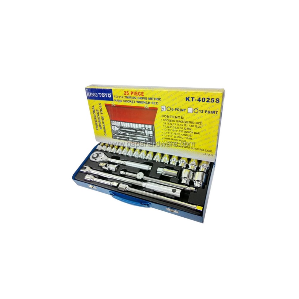 KINGTOYO BOX SOCKET SET - KT-4025S 25pcs 6POINT (6PT 10-32mm)