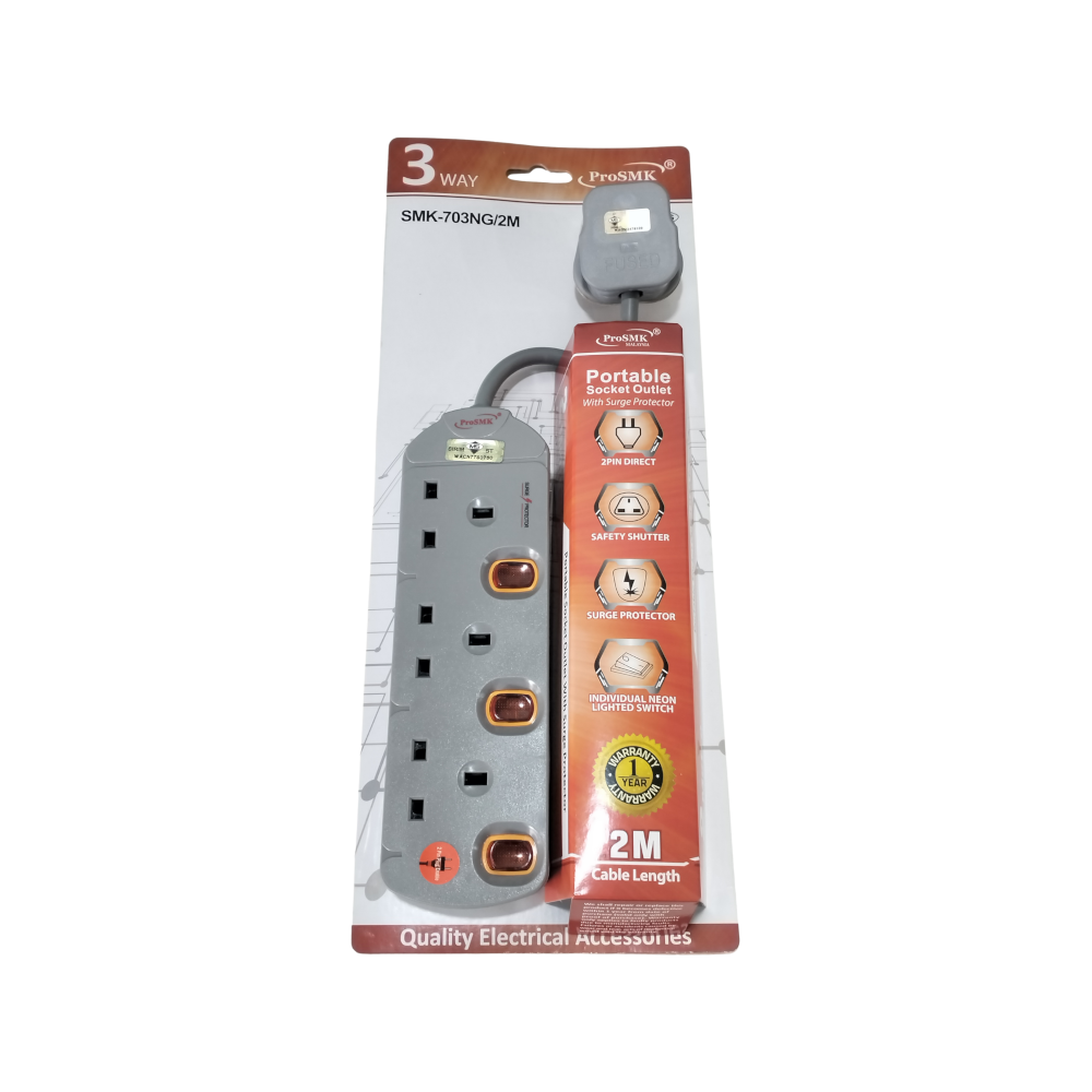 The ProSMK 700 Series (specifically models like the 702NG-2M) is a robust power solution designed for users who need extra safety for their electronic devices. This series is distinguished by its built-in surge protection and SIRIM certification, ensuring it meets rigorous Malaysian safety standards.