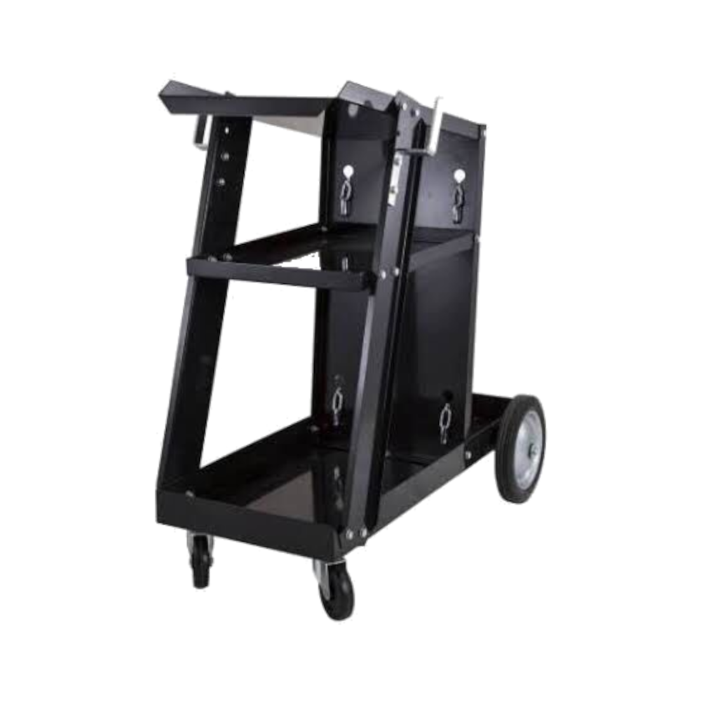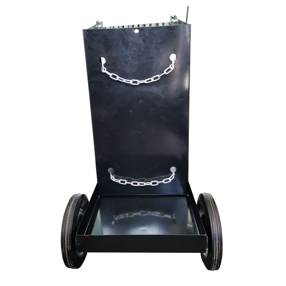 - 2 hooks for suspension of welding wire and gas hoses or cables, loading platform with safety chains for 1 cylinder