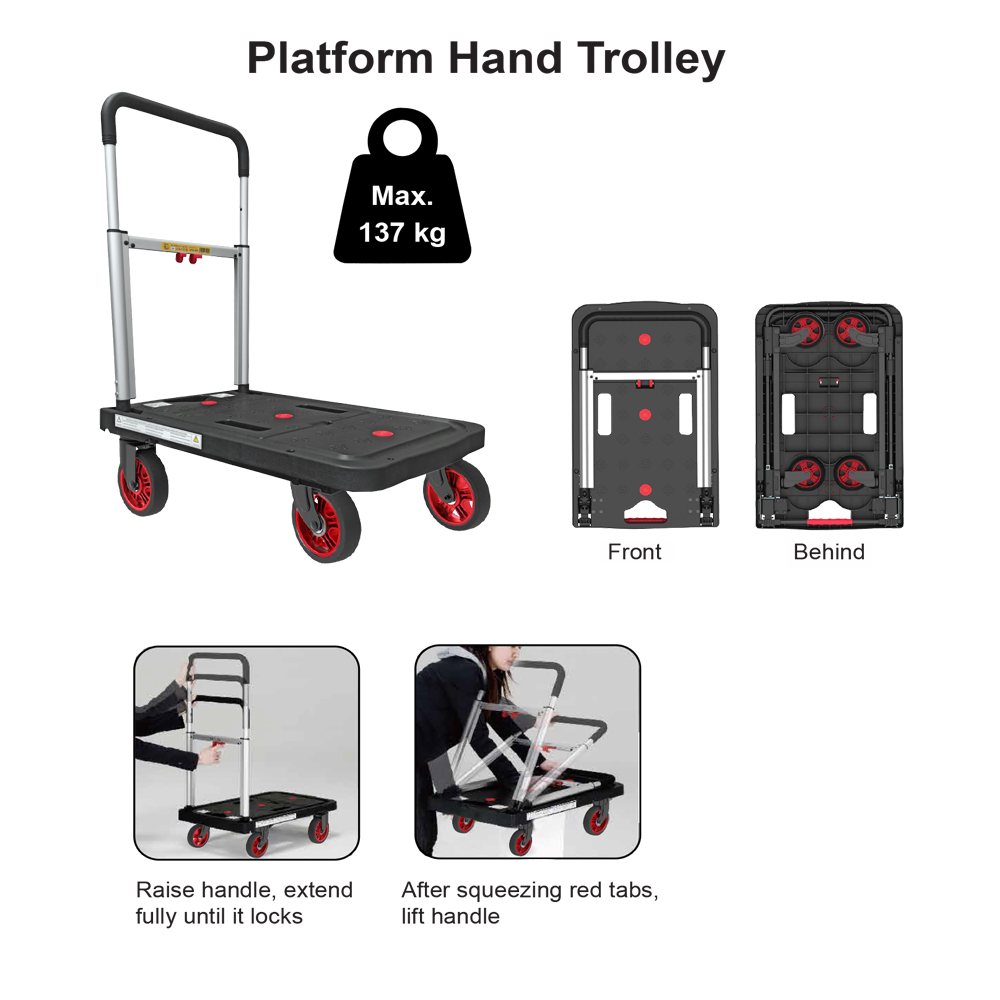 High Load Capacity: With a maximum load capacity of 137kg, this trolley is perfect for moving boxes, luggage, groceries, and more.