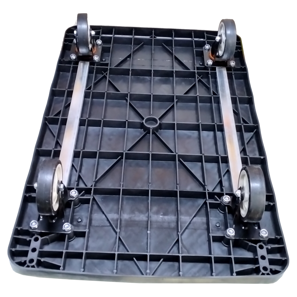 In summary, they are a pair of Markman-branded, foldable, heavy-duty plastic (PVC) platform trolleys ideal for various material handling tasks, differentiated by their respective load capacities.