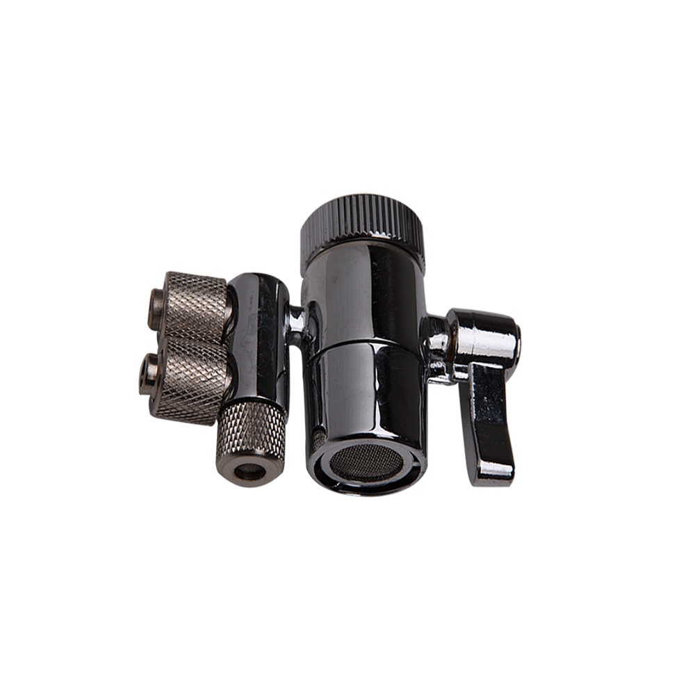 Maximum Security for Dual-Line High-Flow Systems The F080-F11 is a heavy-duty, dual-port diverter valve designed for advanced countertop water processors and high-capacity alkaline ionizers. This 2-way model features dual 3/8" high-flow barbs, making it the ideal solution for systems that require both a high-volume supply line and a matching return or waste line. Unlike friction-fit models, the F080-F11 is equipped with two machined hex compression nuts. These nuts mechanically lock the water tubing onto the barbs, providing an industrial-grade seal that eliminates the risk of hose blowouts under high water pressure.