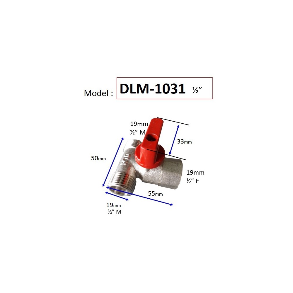 The DLM-1031 3-Way Mini Ball Valve is a precision-engineered plumbing component designed for versatile fluid redirection and control in compact spaces. Featuring a specialized 1/2" Male x 1/2" Male x 1/2" Female (M-M-F) threaded configuration, this valve allows for the seamless branching of water lines, making it an essential tool for modern bathroom and kitchen installations.