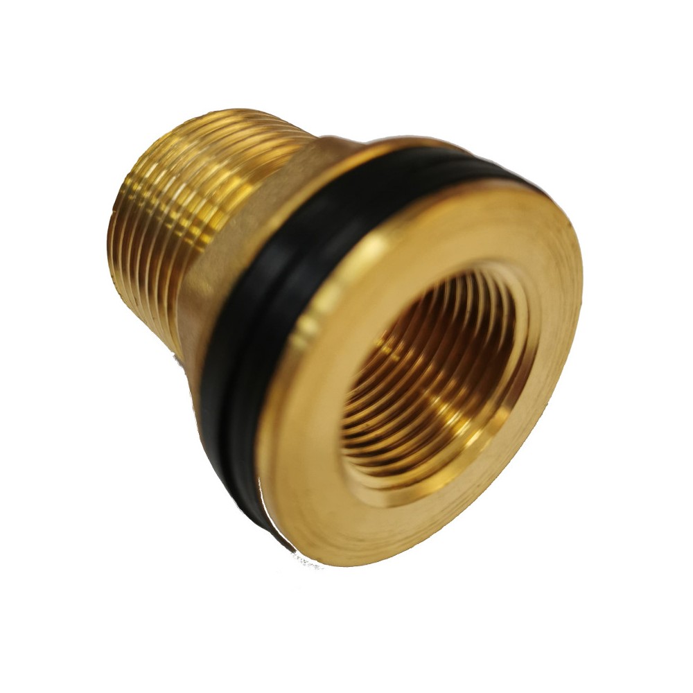 Reducing Thread Design: Combines a 1" outer thread for stable tank wall mounting with a 3/4" inner thread, facilitating an immediate size reduction for downstream piping.