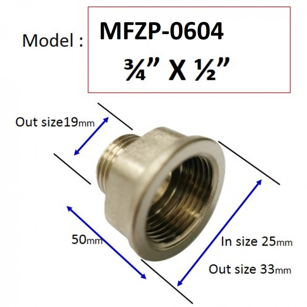 The MFZP-0604 Brass Chrome Adaptor is a precision-engineered plumbing component designed to provide a seamless transition between different pipe sizes. This reducing bush features a 3/4-inch Male thread to a 1/2-inch Female thread configuration, allowing for the direct connection of standard 1/2" fixtures, hoses, or valves to 3/4" water supply lines without the need for extensive repiping.