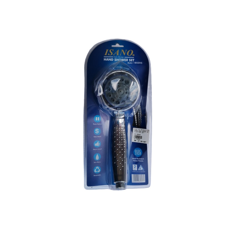 The ISANO IS-1850HS is a versatile and stylish hand shower set featuring a contemporary "Italy Design." This model stands out with its textured, easy-grip handle and a multi-functional spray face designed to provide a customizable and relaxing shower experience. Built to Germany Standard quality, it ensures long-lasting durability and performance.