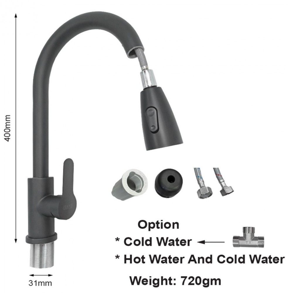 Pull Out Sprayer Design: Long Pull-out sprayer design for longer using needed to fit any clean action in your daily life. Updated mechanical retraction system make pull down sprayer head always sit into original place after use. This stable & durable pull down kitchen faucet will keep your home neat and bring you happy life at all times!