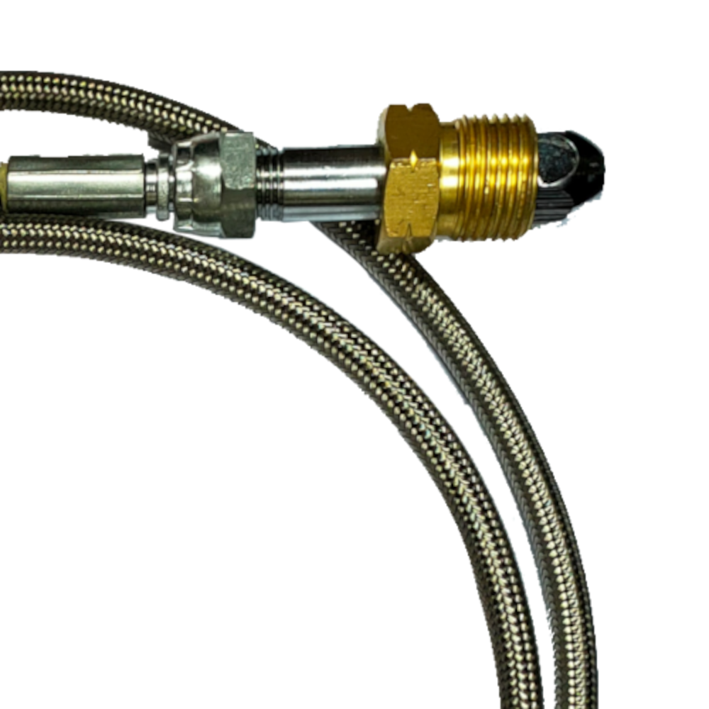 The stainless steel hose/pigtail connecting the cylinder to the manifold is the only part allowed to handle the full cylinder pressure. Manufacturers rate these hoses to handle the high static cylinder pressure (up to 25 bar), but the system immediately down-line must reduce it below the 15 psi usage limit.