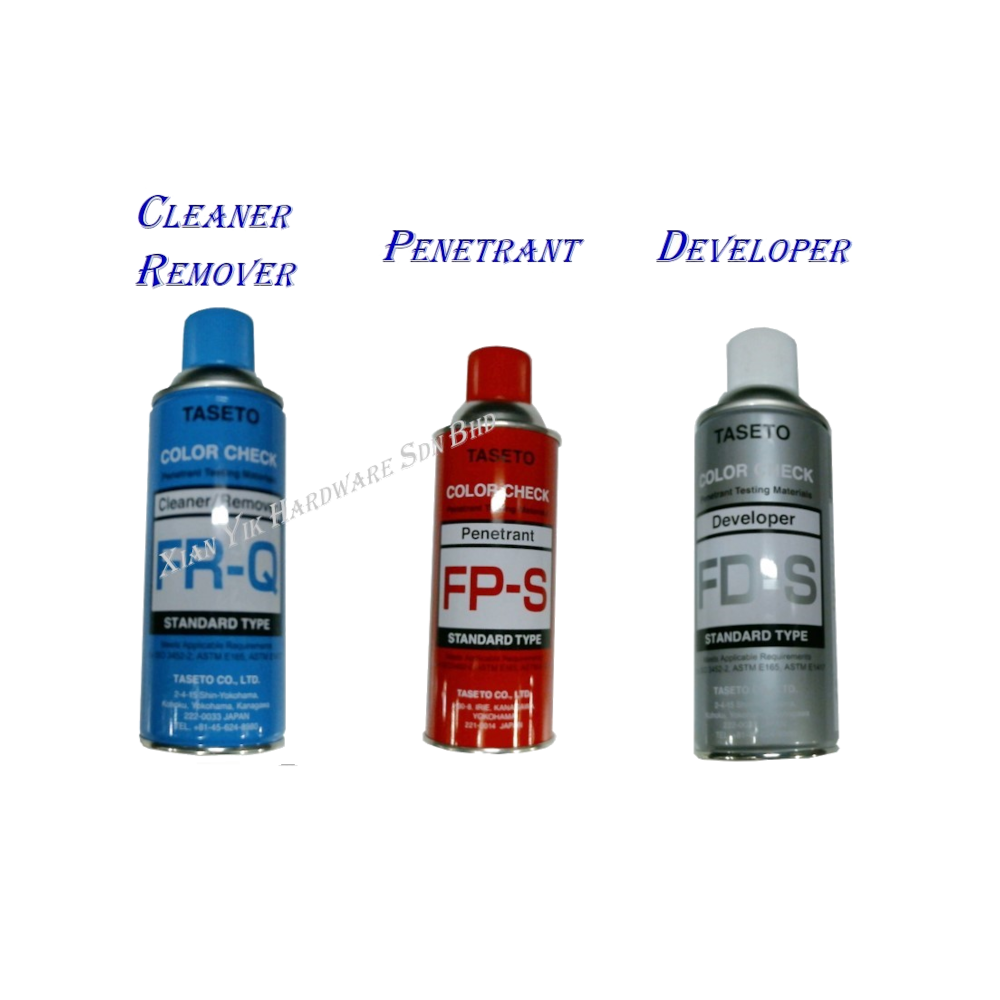 Taseto Color check is a Penetrant testing material which is widely used in the inspecting or surface discontinuities of welds, forgings, Pressure Vessels, Casting, General Metal Work, Power Plant Construction & Leak Testing.