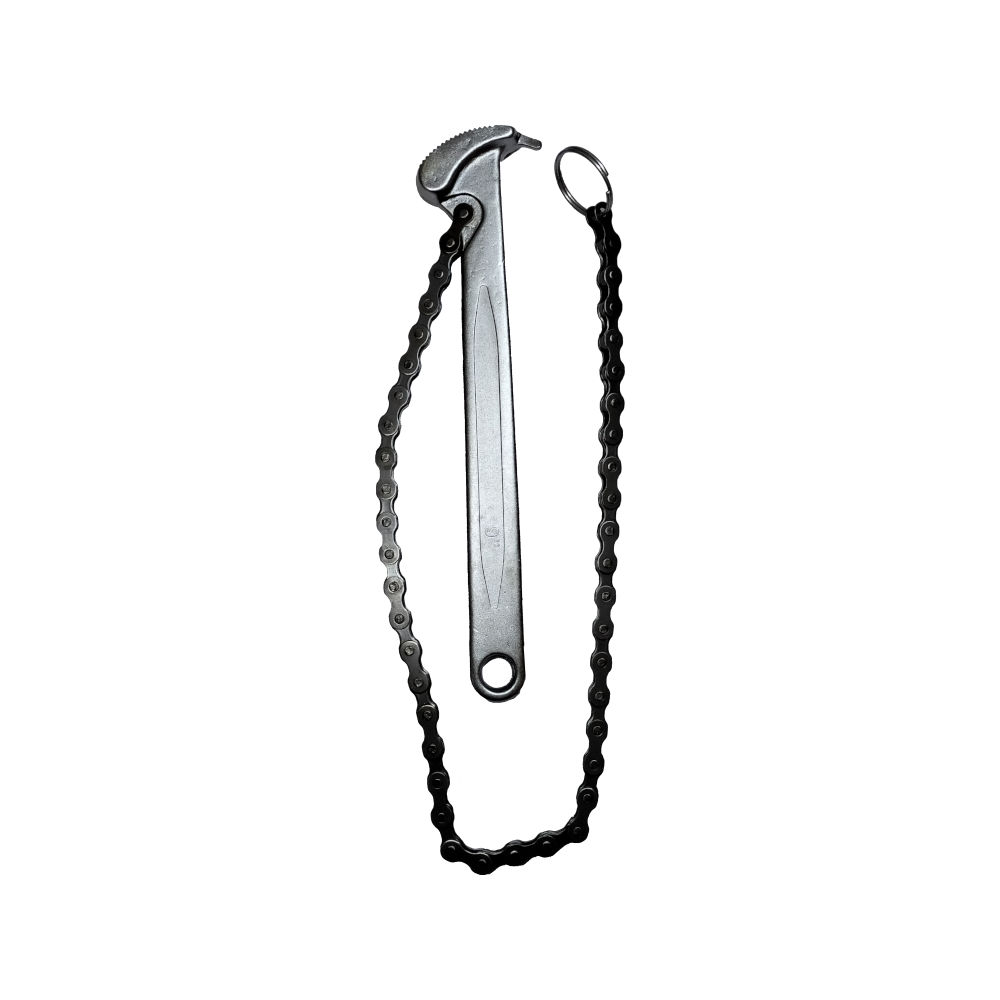Operation: The chain wraps around the cylindrical object (like an oil filter) and the wrench handle is used to apply significant torque, making it easy to loosen stuck or stubborn filters. It can be used in both clockwise and anti-clockwise directions.
